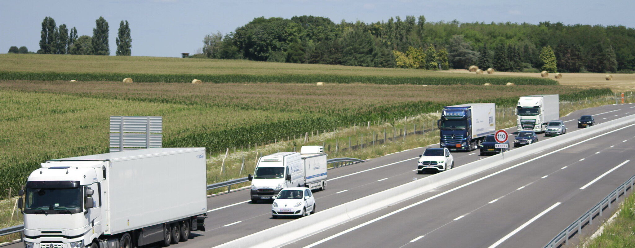 En juin 2022, près de 7 000 camions circulent tous les jours sur le GCO. (photo JFG / Rue89 Strasbourg) Photo : Jean-François Gérard / Rue89 Strasbourg
