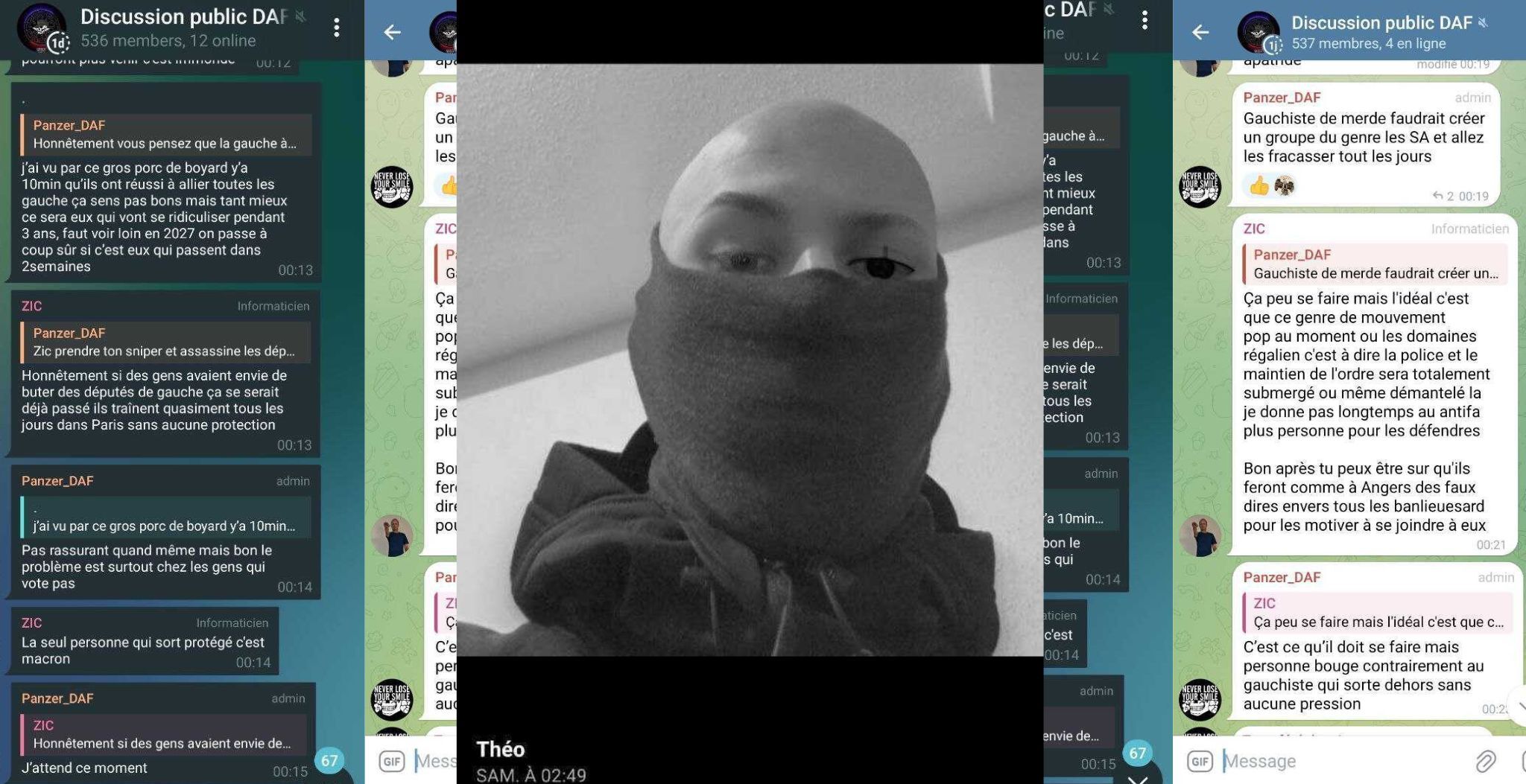 « Ce soir, je fais sauter l’Elysée », « Prépare-toi, je vais mettre une bombe dans ta voiture ». Dans la vraie vie, le jeune de 19 ans s’appelle Théo. Sur Telegram, il utilise le pseudo « Panzer DAF », en référence aux chars d’assaut de l’armée allemande durant la seconde guerre mondiale. Il agissait en tant qu’administrateur de la chaîne Telegram « Division aryenne française ».