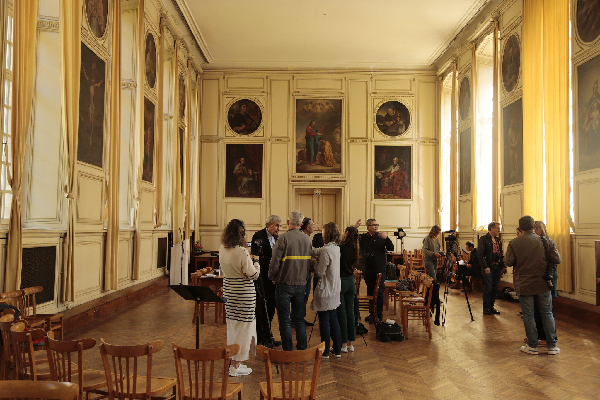 Dans l’imposante salle Saint-Léon du Grand séminaire, une poignée de journalistes s’impatiente vendredi 12 avril. Devant eux, une petite table rustique sert de pupitre improvisé, pour la présentation du nouvel archevêque de Strasbourg. Avec quelques minutes de retard, Pascal Delannoy se présente à eux, affichant un large sourire et une croix (aussi large) autour du cou.