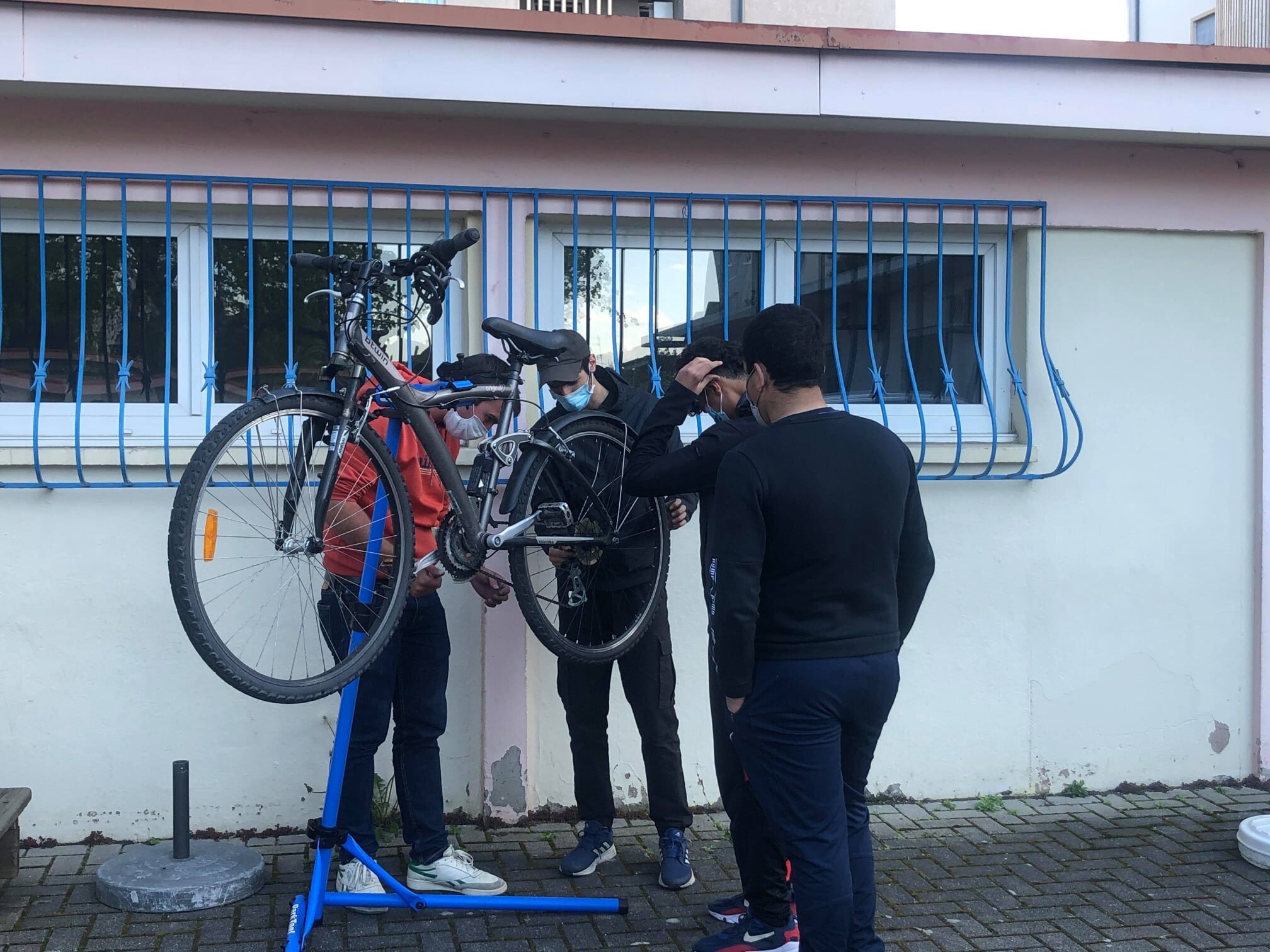 Il est facile de le manquer. Niché derrière un linéaire commercial dont ne subsistent que deux enseignes, l’ancienne école maternelle du 14, rue de Champagne à la Meinau présente une façade claire derrière un portail de métal bleu. Avec ses grandes vitres, le lieu laisse facilement entrer le soleil aussi bien que les habitants. Et si la cour de pavés noircis par le temps et l’enduit marqué de la façade donnent un aspect endormi à l’ensemble, l’activité qui règne en ces murs a de quoi réjouir et surprendre.