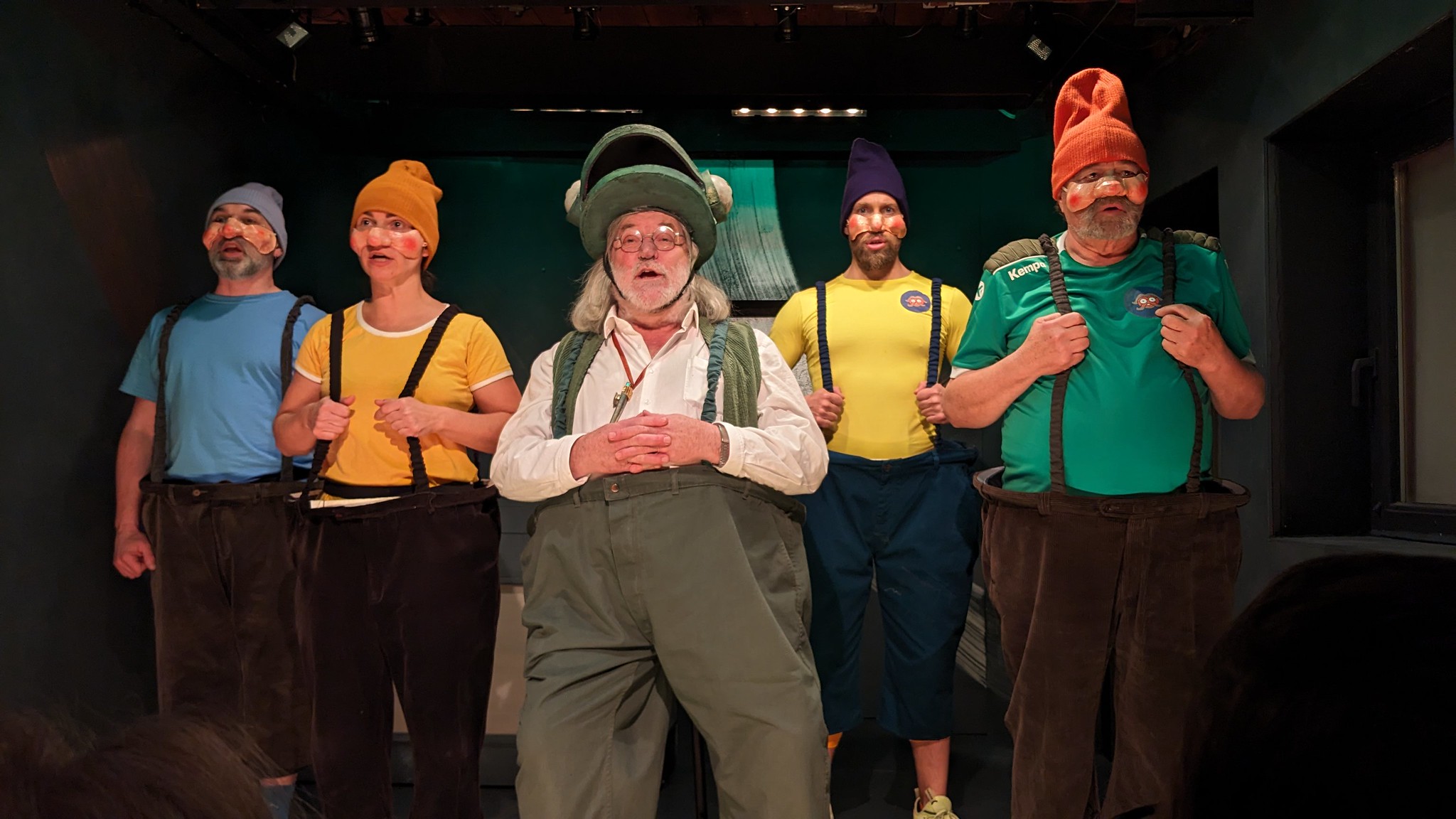 L’histoire prend place dans une forêt. Le sol du théâtre est couvert de terre et de bois. Les deux entrées de part et d’autre du plateau, avec la lumière tombant des cintres, font de la scène une clairière. Ce lieu, habité seulement par les enfants qui arrivent et repartent d’une ville lointaine, est celui de leur fable. C’est leur repaire, l’endroit où ils sont chez eux. Entre les scènes, la lumière s’éteint, et la création sonore de Jad El Khechen et Salvatore Iaia (étudiants à l’Académie supérieure de musique de la HEAR) emplit l’obscurité de tumulte.