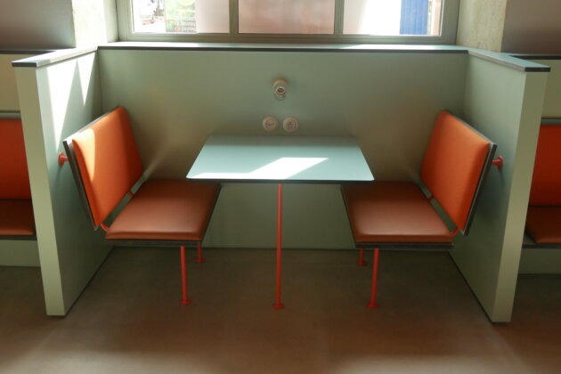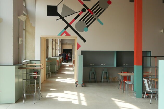 Au cœur de cet ensemble architectural classé monument historique depuis 2016, un autre bâtiment reste fermé au public pour désamiantage. Le « Lab » doit permettre d’accueillir quatre restaurants (300 couverts) en circuit court, une terrasse de 300 mètres carrés, un magasin de producteurs et une épicerie. Le toit du bâtiment, qui devrait être végétalisé par l’entreprise Soprema pour réduire les îlots de chaleur, permettra aussi de proposer des événements.