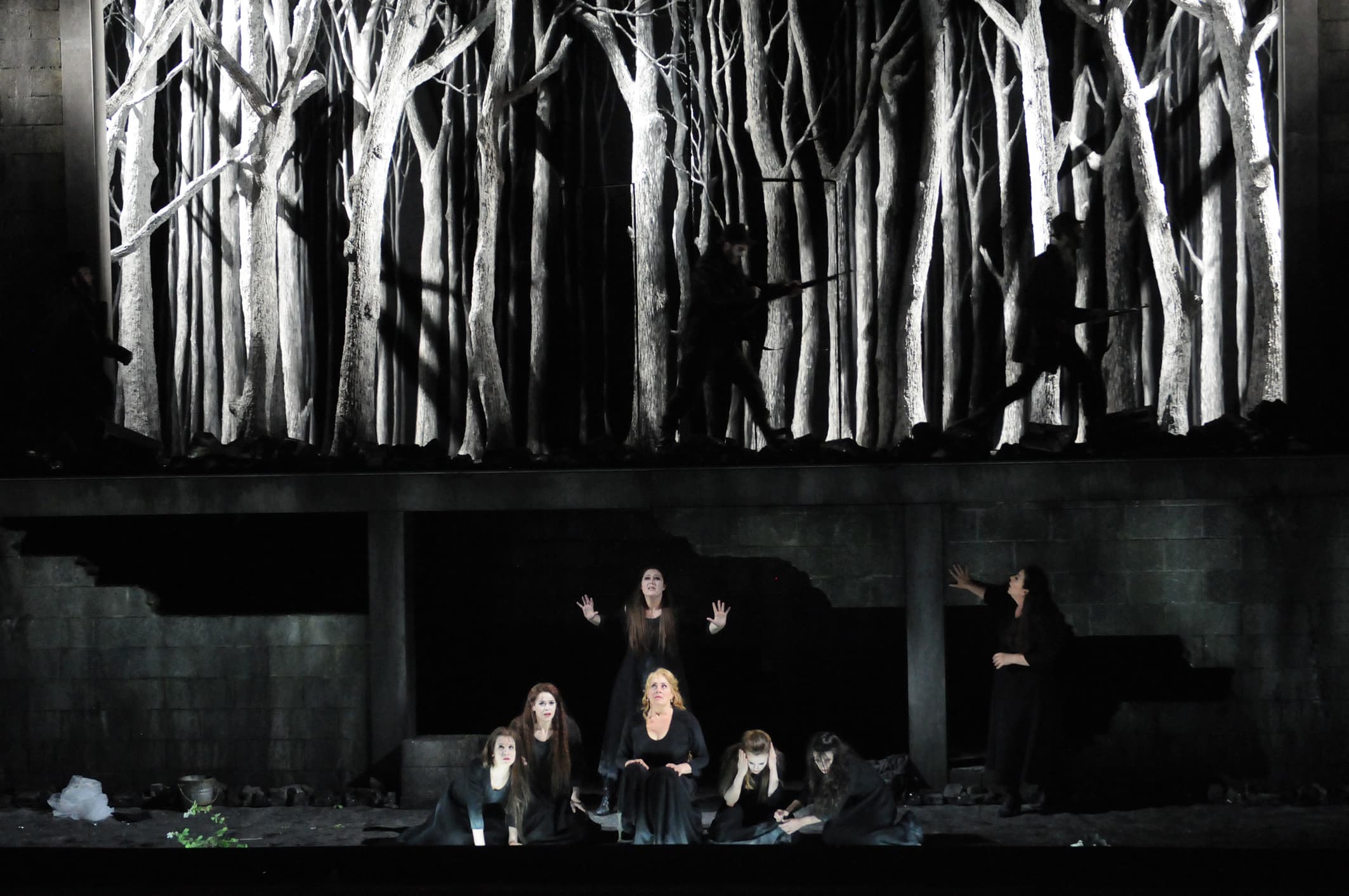 Les trois actes de l’opéra sont rythmés par des interludes musicaux et dansés, d’un esthétisme léché et à l’image de la magnificence des décors. Cependant l’on peut s’étonner du choix de l’ambiance un tantinet « donjon sado-masochiste » qui y est présentée. On peut y voir une certaine contradiction avec le message libérateur et émancipateur de la pièce, en particulier pour les femmes, lorsque l’on sent une certaine complaisance de la mise en scène à s’étendre plus que nécessaire sur des figures de femmes humiliées et dénudées. Égarement ou volonté délibérée d’ajouter une tension érotique ? Cela n’apporte en tout cas pas grand chose au spectacle.