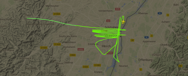 Les noctambules strasbourgeois ont peut-être entendu un avion survoler la ville dans la nuit du mercredi 11 au jeudi 12 avril, vers 1 heure du matin. Selon le site Flightradar, l’appareil a volé à environ 4 400 pieds, soit 1 340 mètres d’altitude, avant de reprendre de la hauteur et de s’éloigner.