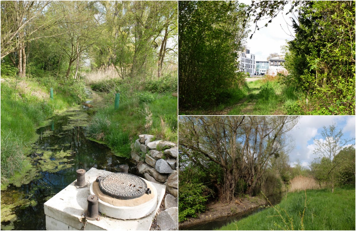 Au bout de la rue de l’Aubépine (pas très verdoyante…), ne prenez pas le pont du Ziegelgraben, mais bifurquez vers la droite, puis à gauche, sur un petit pont de bois. Là, trois options à nouveau : à gauche, direction la Cité de l’Ill et Schiltigheim-Bischheim. En face, le cimetière nord et ses allées au cordeau, à droite (c’est par là !), le chemin qui longe le Muhlwasser.