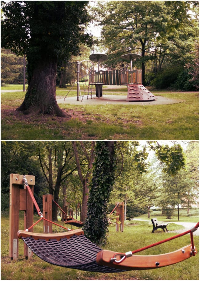 Sortez du parc par le portail avant, rue Achille-Baumann. En face, contournez par la droite une cabane en rondins et pénétrez dans le très confidentiel et agréable parc des Bonnes-Gens. A l’écart des grands axes, joliment arboré et tout en longueur, ce parc est idéal pour un pique-nique en famille. Des jeux pour enfants sont disposés en divers endroits du parc, pour tous les âges. Des hamacs permettent de piquer un petit somme après les agapes. Parfait à mi-parcours.