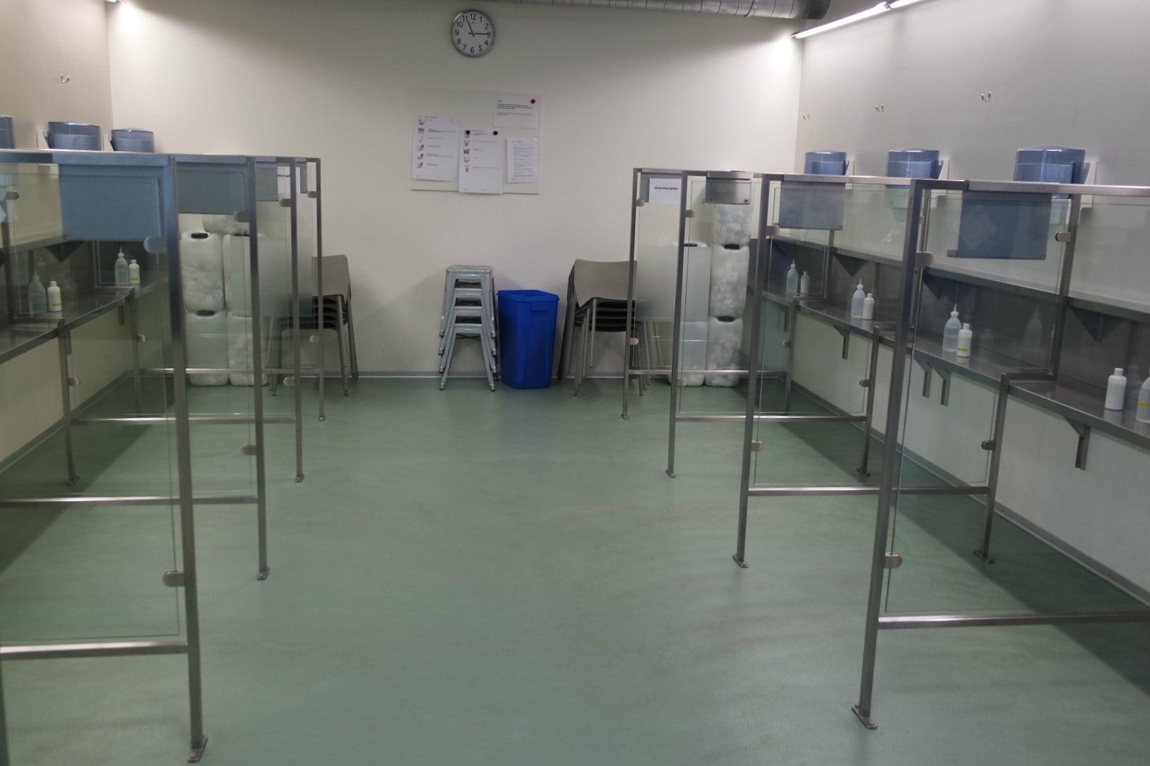 Le bâtiment est un préfabriqué, la façade est grise, les murs sont blancs, la disposition est spartiate, mais le tout est propre et encore plutôt neuf : la « salle de shoot », ou, selon le vocable lui aussi aseptisé, « salle de consommation à moindre risque » du quartier Dreispitz-Gundeldingen de Bâle a ouvert en 2013. Elle a pris le relais de premières structures ouvertes en 1991 (la « Spitalstrasse » et « Heuwaage »). Aujourd’hui, la salle de Dreispitz alterne ses horaires d’ouverture avec celle de « Riehenring », pour accueillir les toxicomanes du lundi au samedi de 11h à 22h.