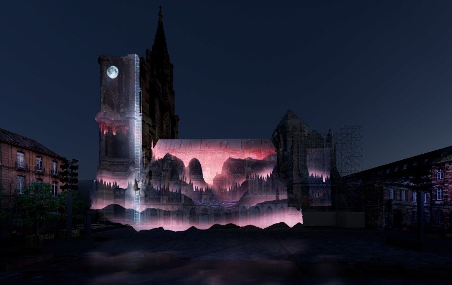 Une immersion à 360° au cœur d’un spectacle son et lumière, c’est ce qu’a voulu la société ACT Lighting Design pour enluminer la cathédrale de Strasbourg et la place du Château. Koert Vermeulen, directeur de la création de la société, à l’origine du spectacle, s’est inspiré du théâtre d’ombres pour réaliser ce « ballet des ombres heureuses », dont le nom s’inspire d’une musique d’opéra.