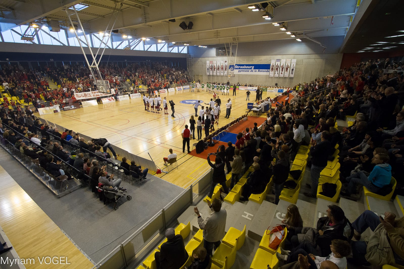 EAP : « Justement, lors de notre montée en ProB, la Ville de Strasbourg nous avait proposé d’y jouer. Il y aurait eu moins de contraintes au niveau logistique, nous l’aurions seulement partagé avec la SIG. Mais nous aurions joué tous les soirs dans une salle quasi-vide, les spectateurs se déplaçant moins nombreux pour les petites équipes. En fait, nous sommes pour l’instant légèrement en dessous de nos attentes en termes de fréquentation. Au moins, à la Rotonde, la salle est bien remplie les soirs de matchs, et nous faisons même salle comble contre les grosses écuries. »