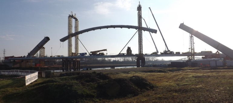 Et si la pose de l’arc est une étape symbolique et visuelle ce n’est pas la dernière car les clés d’arc, les deux extrémités qui viendront rejoindre la partie centrale, seront soudées dans la même semaine. Et la pose des suspentes, qui relient l’arc au tablier, ainsi que les finitions auront lieu au premier semestre 2016. Un travail important qui demande, pour chaque étape, des équipes de 35 à 40 ouvriers.