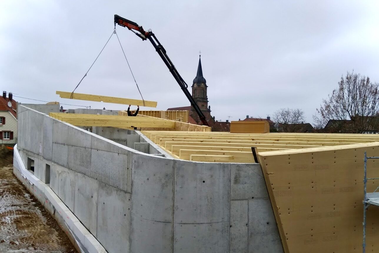 Le chantier du bâtiment périscolaire d’Uffholtz, construit en béton Pneumatit.