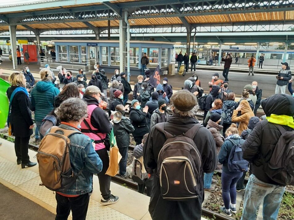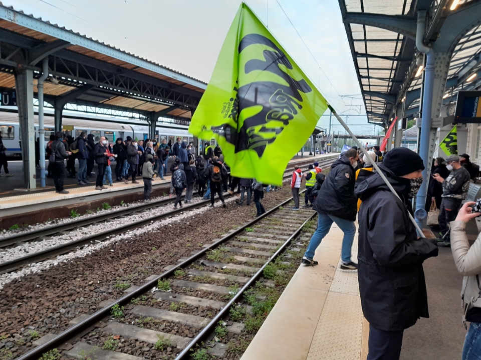 « On avait donné rendez-vous à 7h pour une opération de tractage devant la gare de Sélestat. Une centaine de personnes ont répondu à l’appel, il y avait des membres de plusieurs sections professionnelles de SUD et des collectifs comme On crèvera pas au boulot ou le Chaudron des alternatives. Les gens étaient en colère et ont décidé de bloquer les trains en montant sur les rails. Nous, les cheminots, n’avons pas le droit de faire ça, alors nous avons sécurisé les manifestants. À 8h30 on a décidé de partir. Mais les gens sur place étaient favorables, ils nous demandaient même de continuer la mobilisation. »