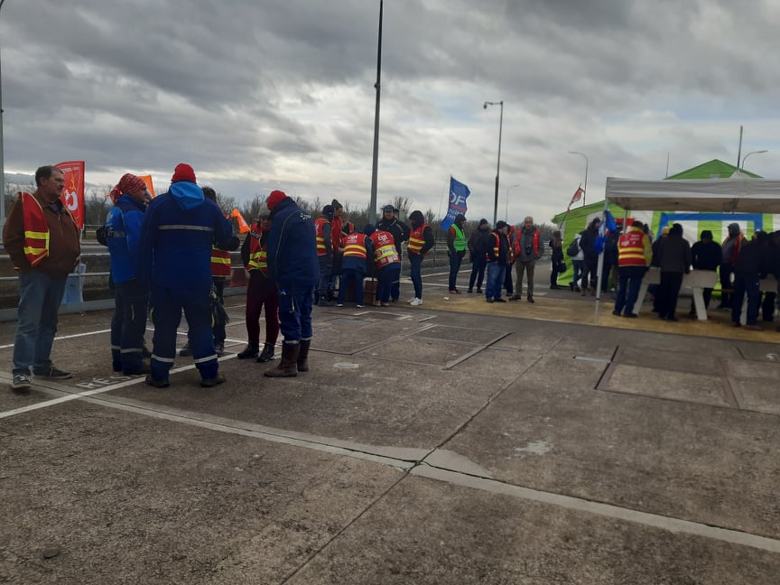 Pendant un peu plus d’une heure, d’autres salariés de la branche énergie ont bloqué l’écluse EDF de Strasbourg en soutien de la mobilisation de Marckolsheim selon la CGT. La police est rapidement intervenue pour évacuer le site.