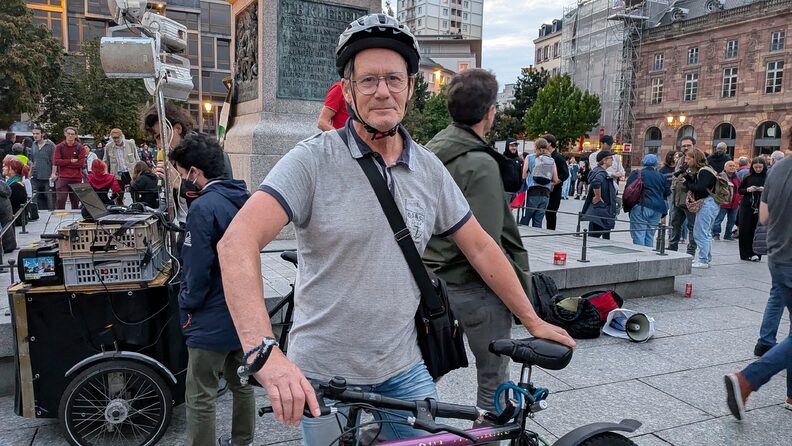 Pour Hugues Werlé, les manifestations sont inutiles. « Il faut bloquer les flux économiques et financiers », dit-il.Photo : Guillaume Krempp / Rue89 Strasbourg