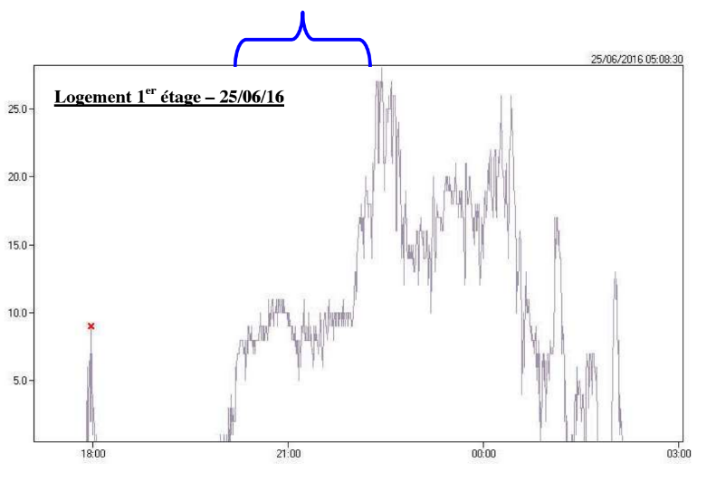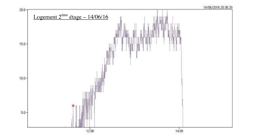 Une nouvelle enquête est réalisée par les services de la Ville, qui détectent à nouveau des mesures trop élevées. Le service a eu la bonne idée de se déplacer pour la première fois aux heures d’ouverture du restaurant. Dans son rapport d’enquête, les services d’hygiène mettent en avant que les pics sont corrélés aux heures d’accueil des clients.