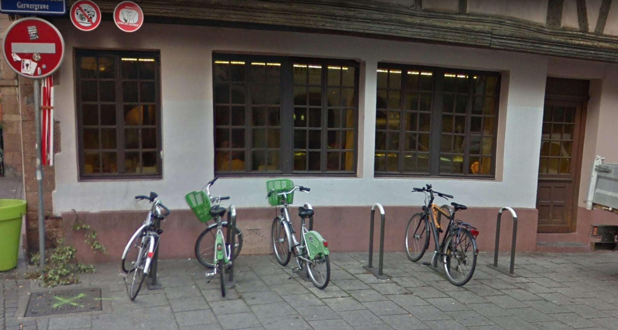 Au cœur des tensions, le carrefour entre Grand’Rue et la rue du Fossé-des-Tanneurs, le spot des métalleux, qui occupent l’endroit à grand renfort de stéréo et de 8.6. Un happy hour spontané hors terrasse auquel participent parfois les passants, mais que les commerçants goûtent peu. En première ligne, l’Hôtel Europe dont Rue89 Strasbourg avait déjà parlé, alors qu’une pancarte anti « Manu le Rockeur » avait été installée sur sa façade. La pancarte a depuis disparue, mais les plaintes persistent. Ni le parking à vélo sous le balcon, ni le gros pot de fleur devant le terre-plein, n’ont eu raison de l’attroupement. Au grand dam de sa directrice, Marie-Hélène Engel :
