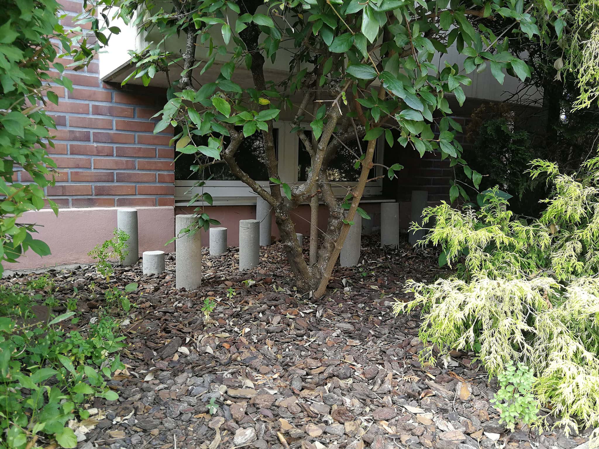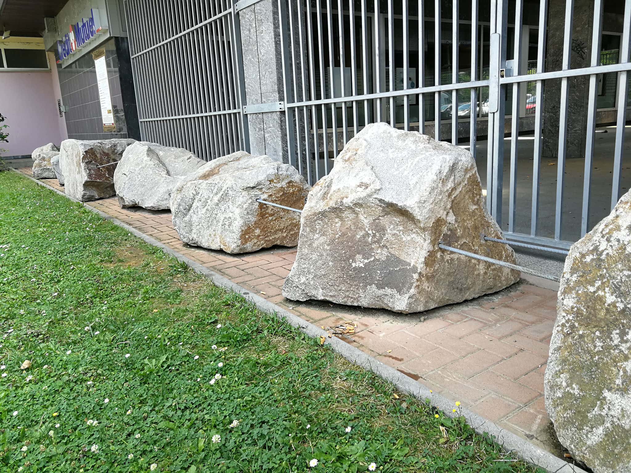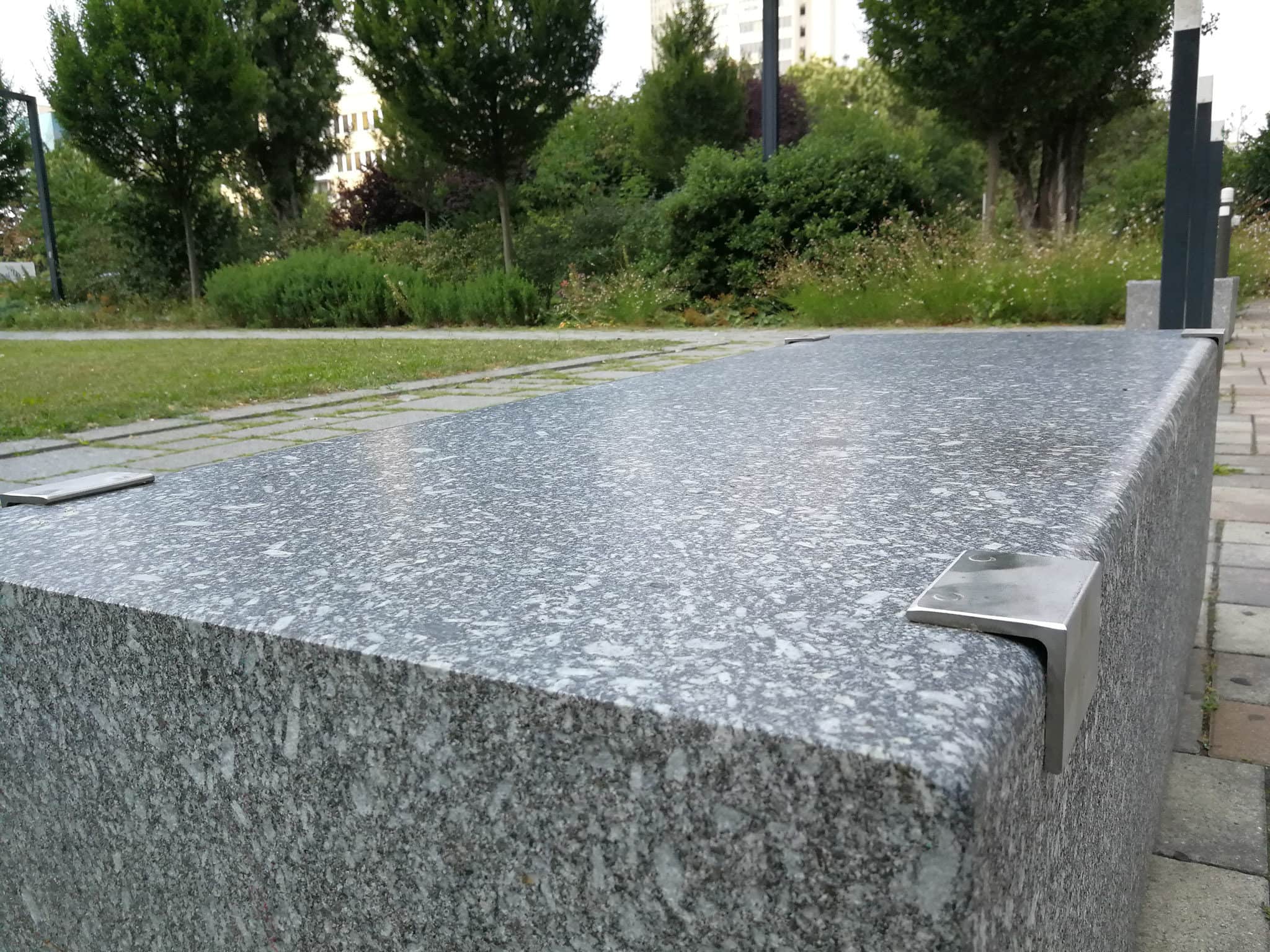 Aux abords des quartiers plus résidentiels, les installations répulsives fleurissent également. Grande spécialité aux abords des immeubles : les galets incrustés dans du béton. Mention spéciale à cette résidence près du nouvel hôpital universitaire, qui ressemble plus à un hérisson qu’autre chose. En plus des cailloux et de la végétation, des poteaux en béton ont été installés pour combler les espaces laissés vacants par les buissons. Aux abords d’un bâtiment pour l’instant en travaux du quartier Esplanade, on trouve ces pierres reliées à des câbles en acier, pour empêcher quiconque de s’allonger. Pas un seul mètre carré n’est utilisable.