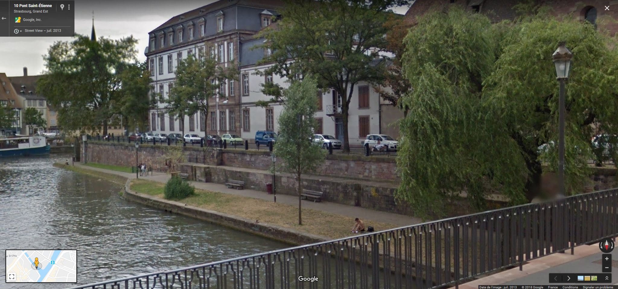 Hervé a raison. Entre 2011 et 2013, les bancs sur le quai Saint-Étienne ont cédé la place à des arbustes. Même traitement pour les berges en contrebas, des deux côtés de l’Ill. Entre 2013 et 2014, les bancs et le gazon moelleux des berges ont été remplacés par de la végétation dissuasive, agrémentée l’été de grilles. Seul le chemin en pavés reste encore praticable pour les promeneurs. Circulation autorisée, stationnement interdit.