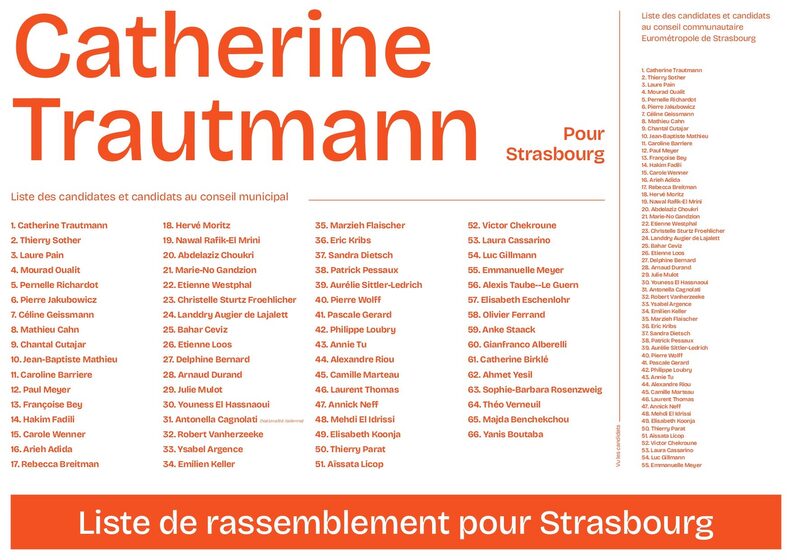 Au final, six candidats de Strasbourg on y croit rejoignent la liste Pour Strasbourg : Pierre Jakubowicz (6e), Rebecca Breitman (17e), Étienne Loos (26e), Mehdi El Idrissi (48e), Sandra Dietsch (37e) et Alexis Taube-le-Guern (56e).