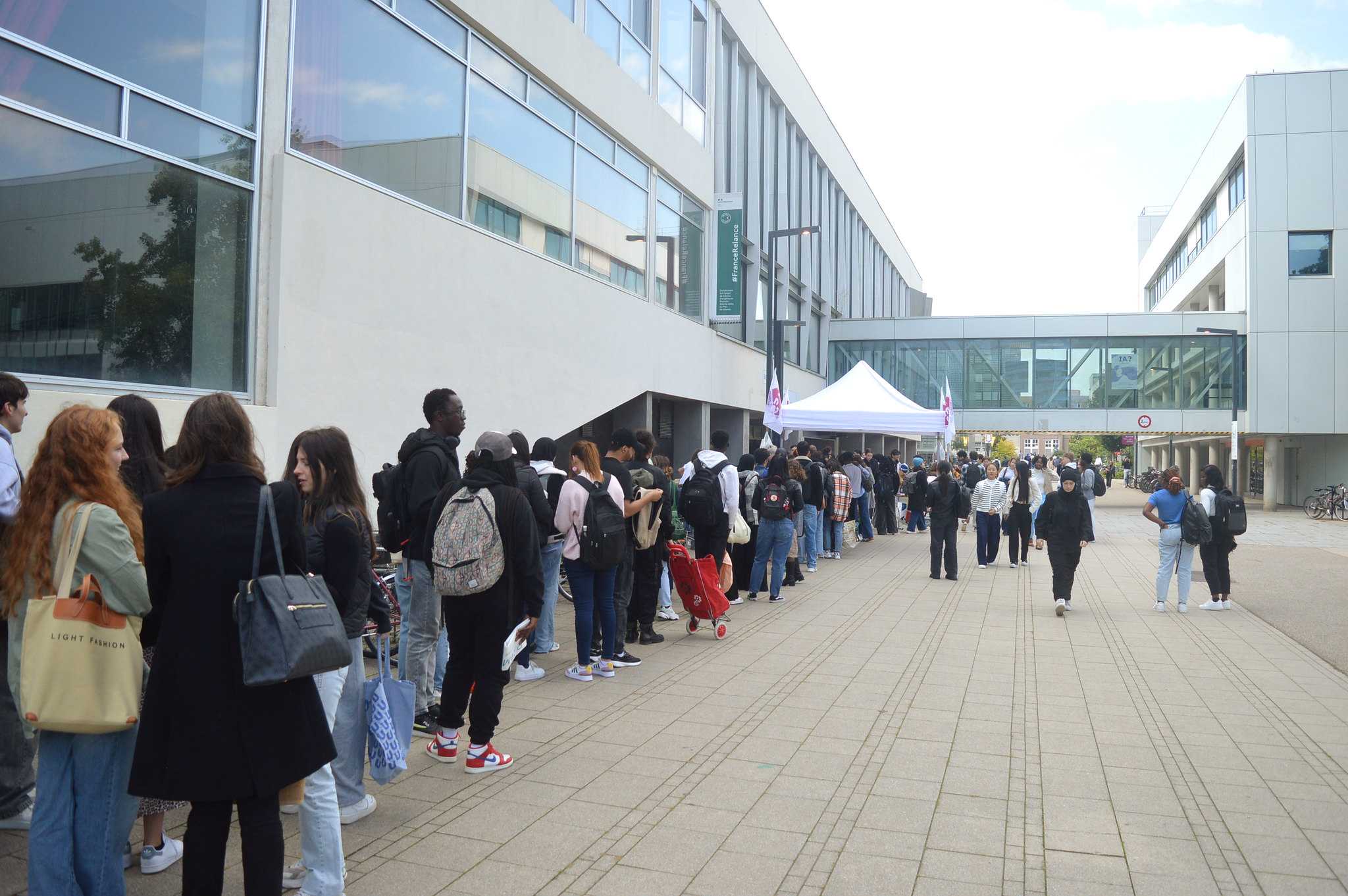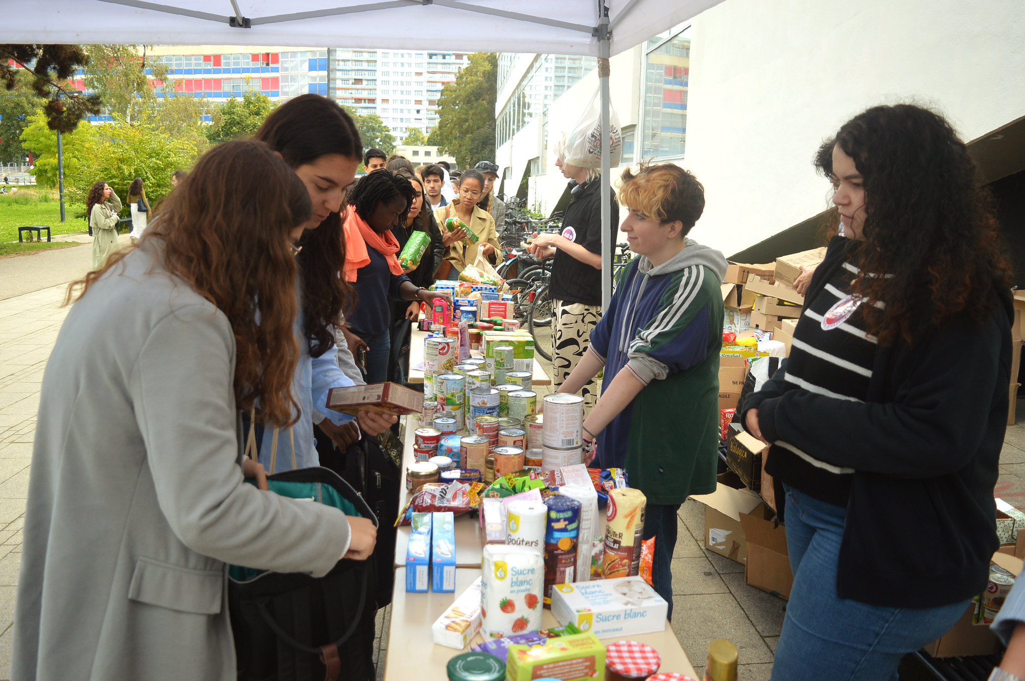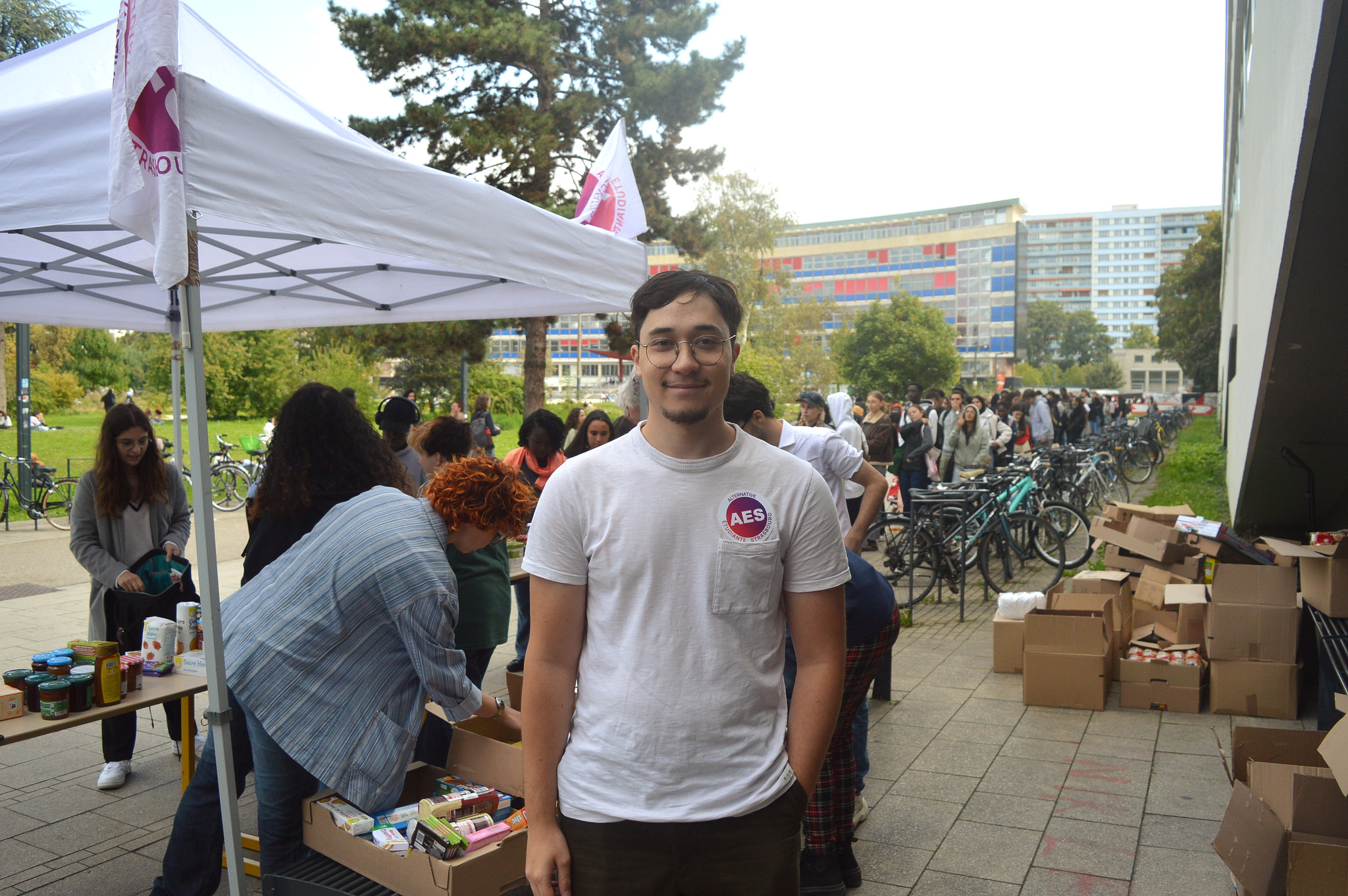« C’est alarmant. On n’a jamais eu autant de nourriture et elle n’est jamais partie aussi vite », constate Rayyan, du syndicat Alternative étudiante Strasbourg (AES). Deux semaines après la rentrée, il réalise une distribution alimentaire d’envergure ce 18 septembre. Entre 12h et 14h, environ 400 étudiants auront récupéré de quoi manger sur le campus central.