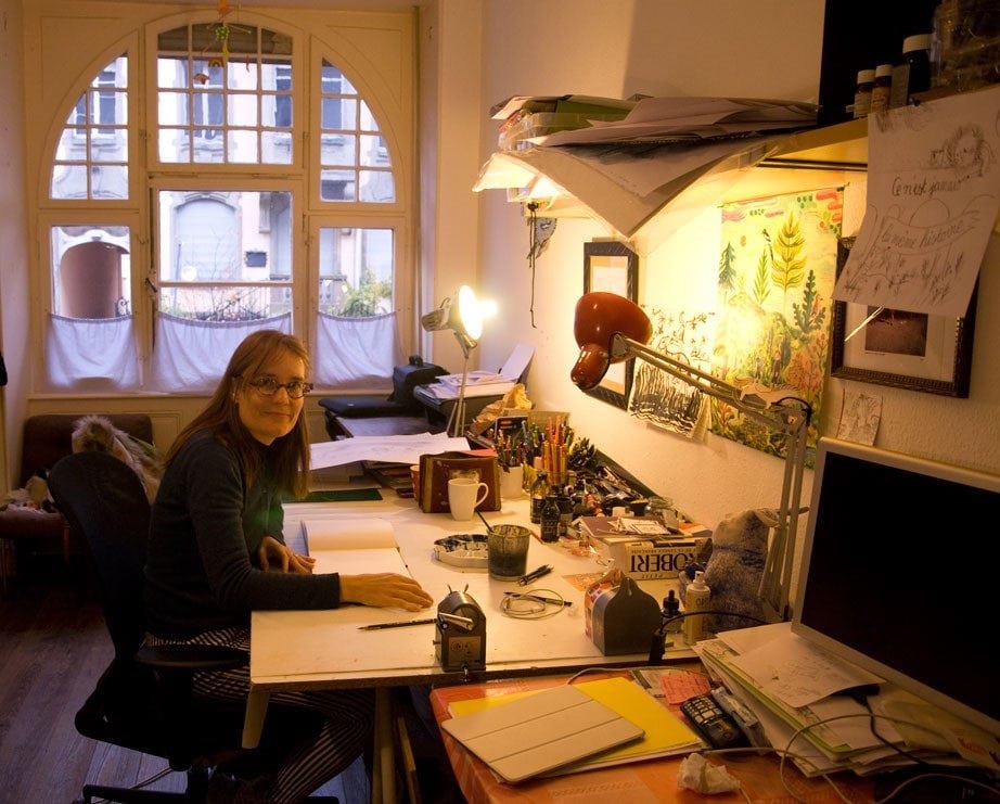 Elle collabore aussi avec d’autres auteurs comme Didier Levy pour « La petite sœur du chaperon rouge », (2015), ou encore Raphaël Frier pour, « Un baiser à la figue », (2009), où elle illustre des odeurs, une expérience complètement onirique. En février, elle a sorti un livre avec l’auteure Claire Ubac, « Ici et là les maisons d’Akira », aux éditions Albin Michel. Dans un autre registre, cette touche-à-tout a habillé une voiture relais petite-enfance en Champagne-Picardie, exposé son « colis rouge » à la médiathèque Malraux, et illustré un spectacle, « Le renne du soleil », soutenu par la Ville de Strasbourg. Volontaire et engagée, elle vend, en 2016, ses dessins au profit des associations qui aident l’accueil des réfugiés à Paris.