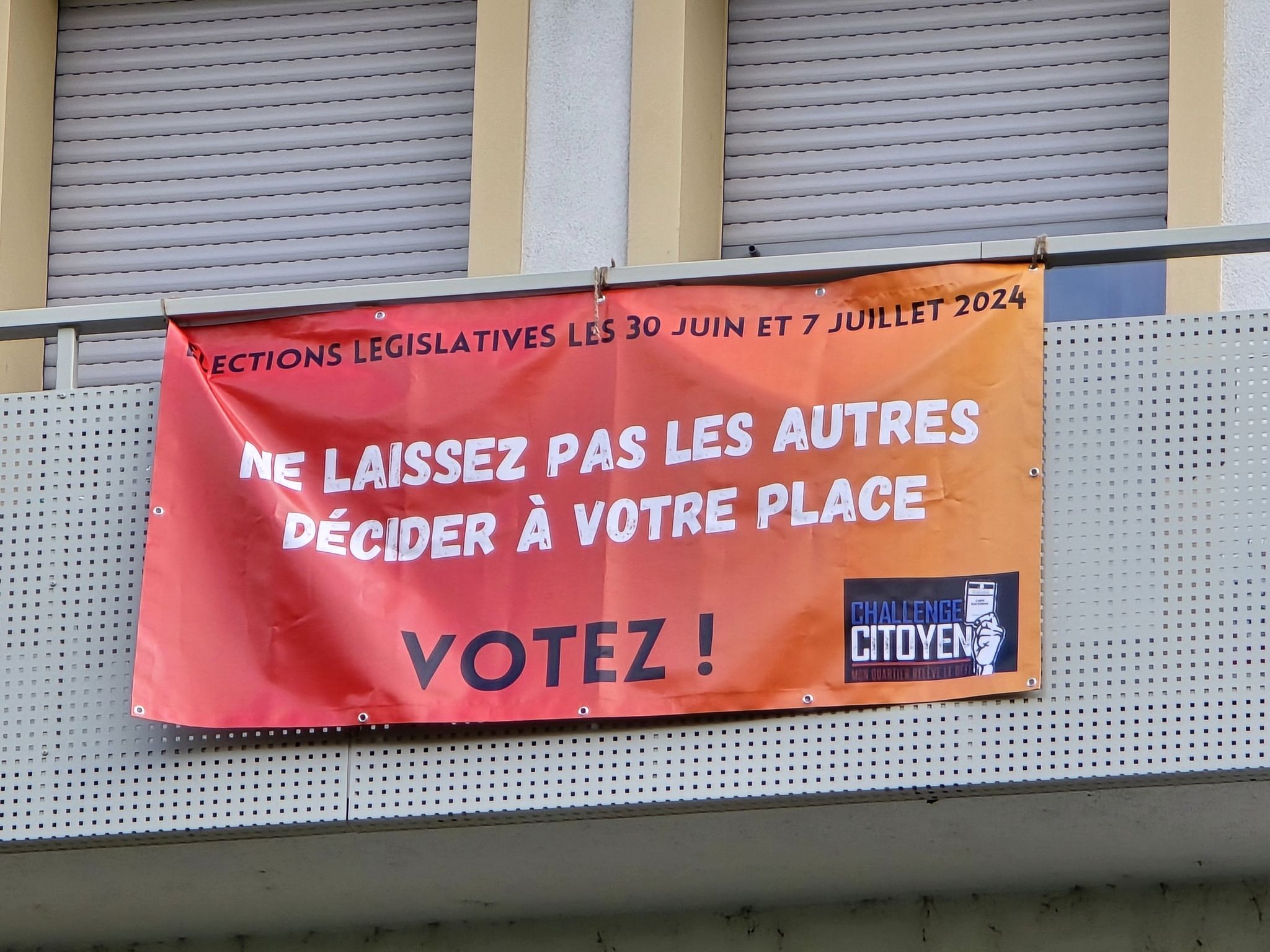 La gravité du moment politique pousse de nombreuses personnes à prendre position pour inciter à l’implication politique et au vote. Un autre collectif citoyen au Neuhof, déclenché notamment par le centre socio-culturel du quartier et son directeur Khoutir Khechab, a coordonné une action d’accrochage de banderoles dans la cité.