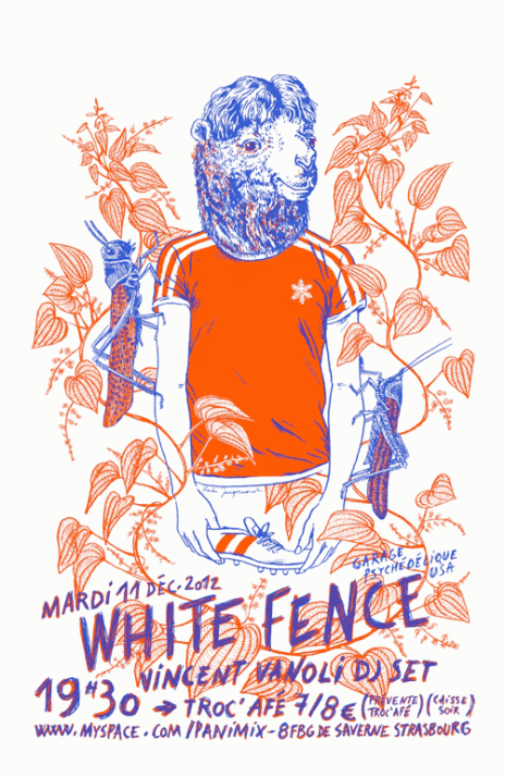 A découvrir mardi 11 décembre au Troc’Afé, à partir de 19h30, le groupe White Fence. Originaire de Californie, leur musique que l’on pourrait qualifier de lo-fi, s’inspire du rock garage et des années 1960. Pour l’occasion, l’auteur de bande-dessinée, Vincent Vanoli se fera le DJ de la soirée.