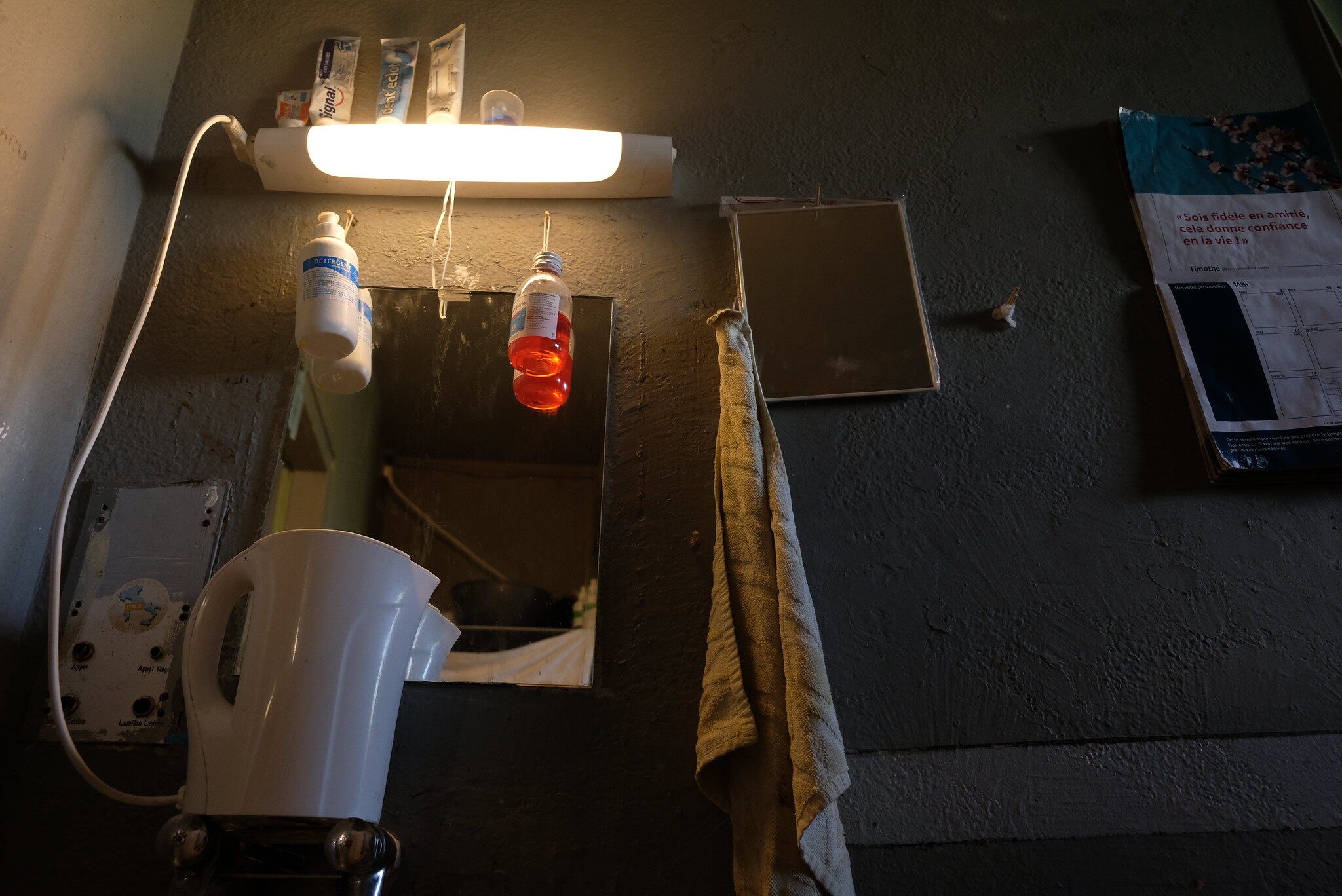 Dans le bâtiment D, rénové récemment, le contraste est saisissant. Pour les soixante détenus de cette section, il y a une armoire qui permet d’éviter les empilements précaires comme chez Gilbert. Les murs sont aussi repeints. Les structures des lits superposées sont neuves. C’est la seule section où les douches sont en cellule. Dans d’autres ailes de la prison, les douches sont collectives. Certaines d’entre elles sont mal aérées, l’humidité persistante produit une odeur de moisi. D’autres n’offrent qu’une intimité limitée aux détenus. « Pour poursuivre les rénovations des bâtiments et pour changer tout le système de chauffage, nous attendons encore un financement de Bercy », regrette Frédérique Matthys.