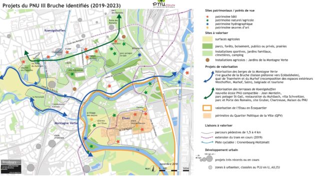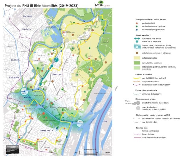 Une autre délibération importante concerne les « Parcs naturels urbains » (PNU). L’idée des PNU est de répliquer le modèle des parcs naturels régionaux (comme ceux des Vosges du nord ou du Ballon des Vosges) où l’on concilie l’activité économique, humaine et la préservation de la nature. Après celui à l’ouest appelé « Ill-Bruche », dont la suite du développement vise à l’étendre vers la gare, notamment en passant par l’Elsau, celui de « l’Ill Rhin » sera créé. Ce deuxième PNU englobe les quartiers du conseil des XV, de l’Orangerie et jusqu’à la forêt de la Robertsau.
