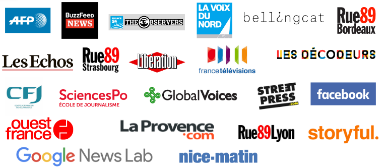 Parmi les premiers partenaires du projet figurent l’AFP (Agence France-Presse), BuzzFeed News, France Médias Monde (via les Observateurs de France 24), France Télévisions, Global Voices, Libération, La Provence, Les Echos, La Voix du Nord, Le Monde (Les Décodeurs), Nice-Matin, Ouest-France, Rue89 Bordeaux, Rue89Lyon, Rue89 Strasbourg et StreetPress.