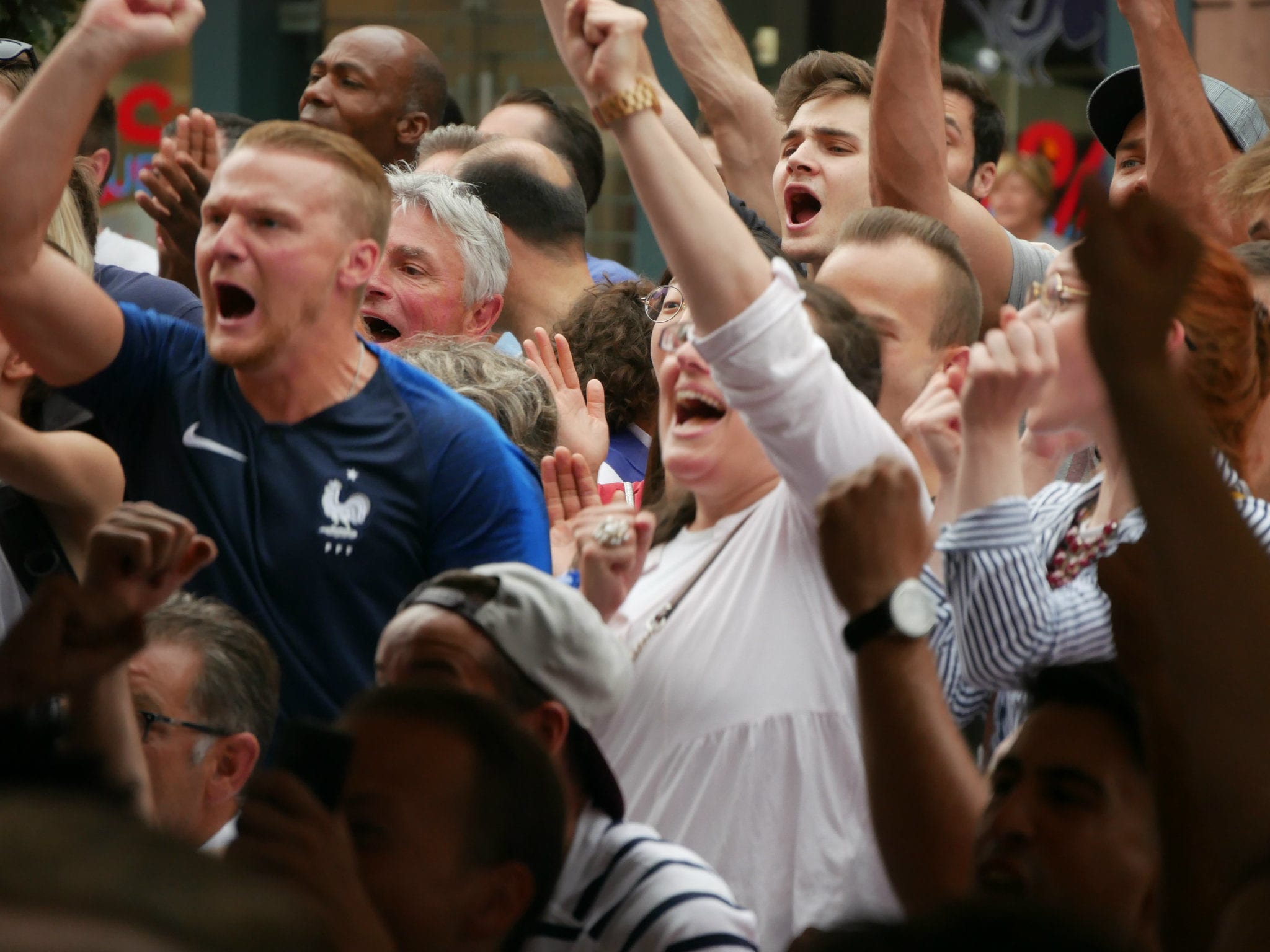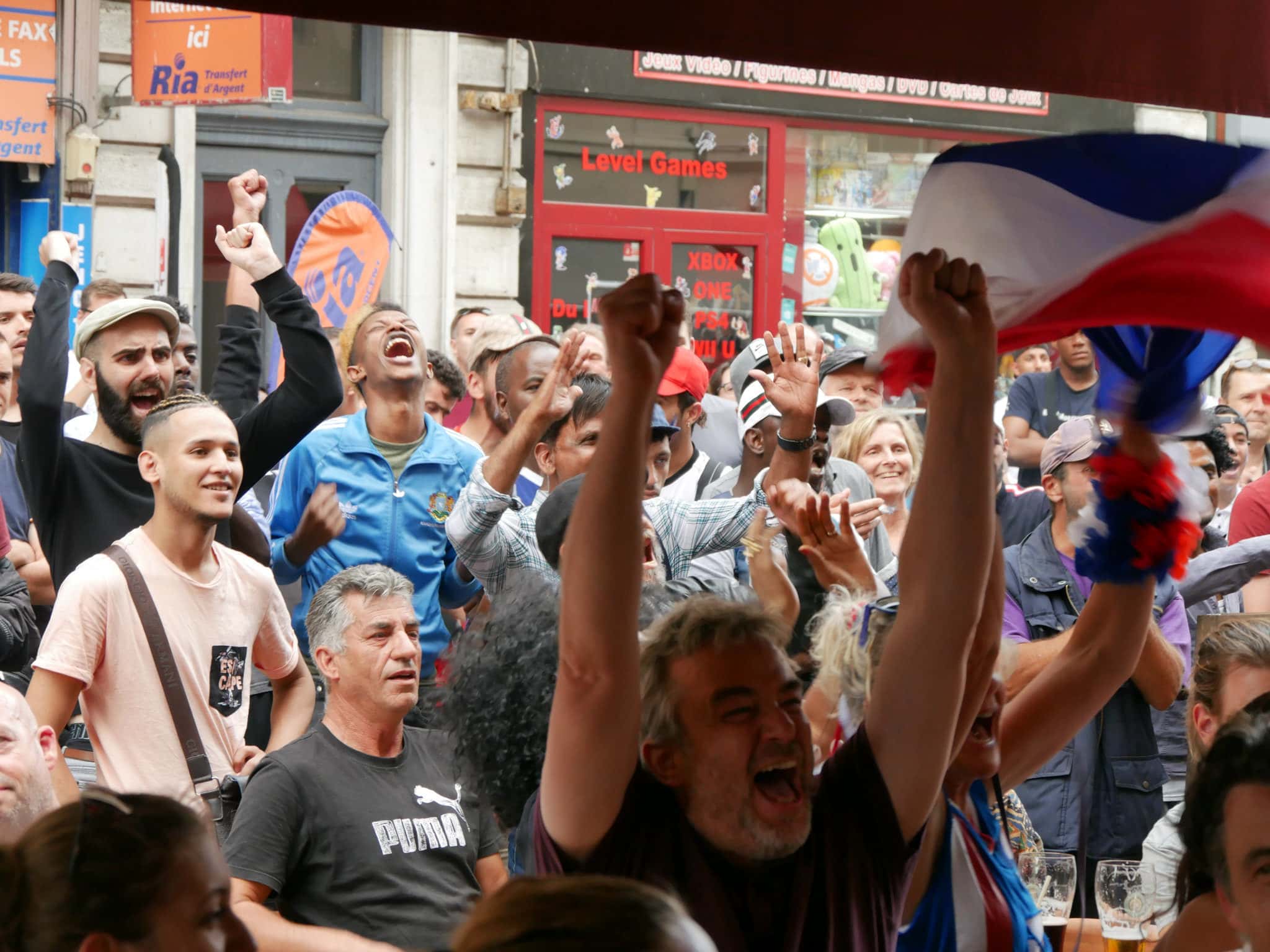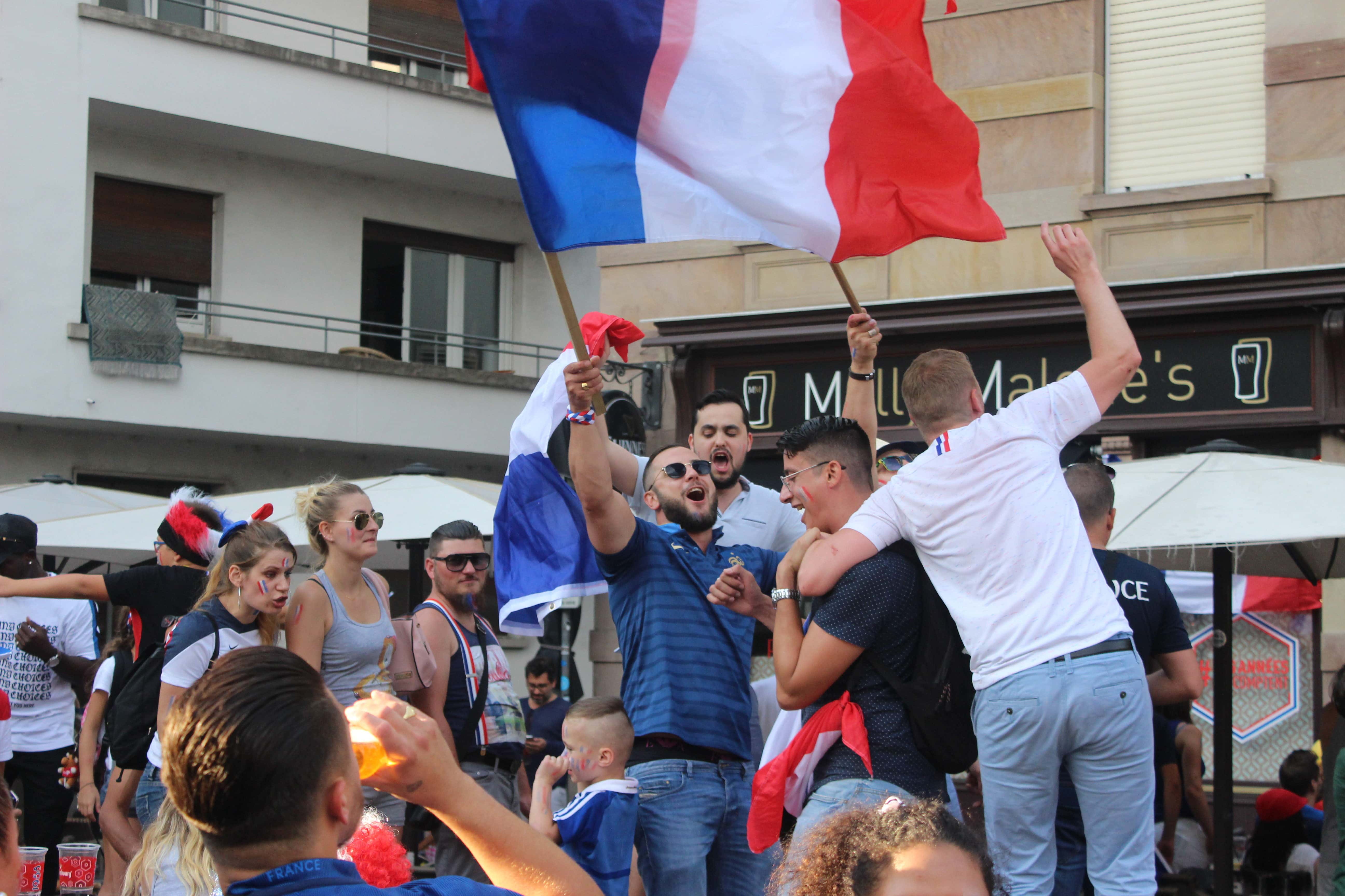 Les Bleus ont marqué deux fois en seconde période. Les Strasbourgeois venus voir la finale dans les bars ont commencé à célébrer avant même la fin du match. Aperçu de l’ambiance sur la place du vieux marché aux poissons.