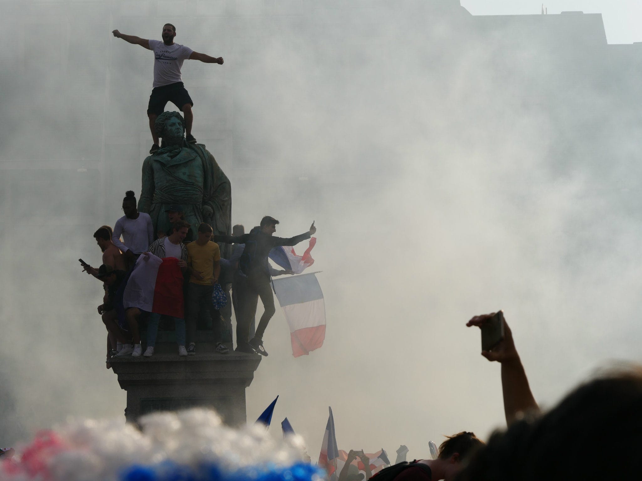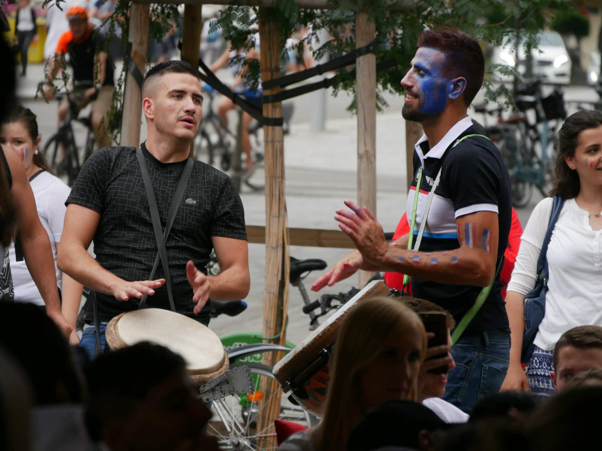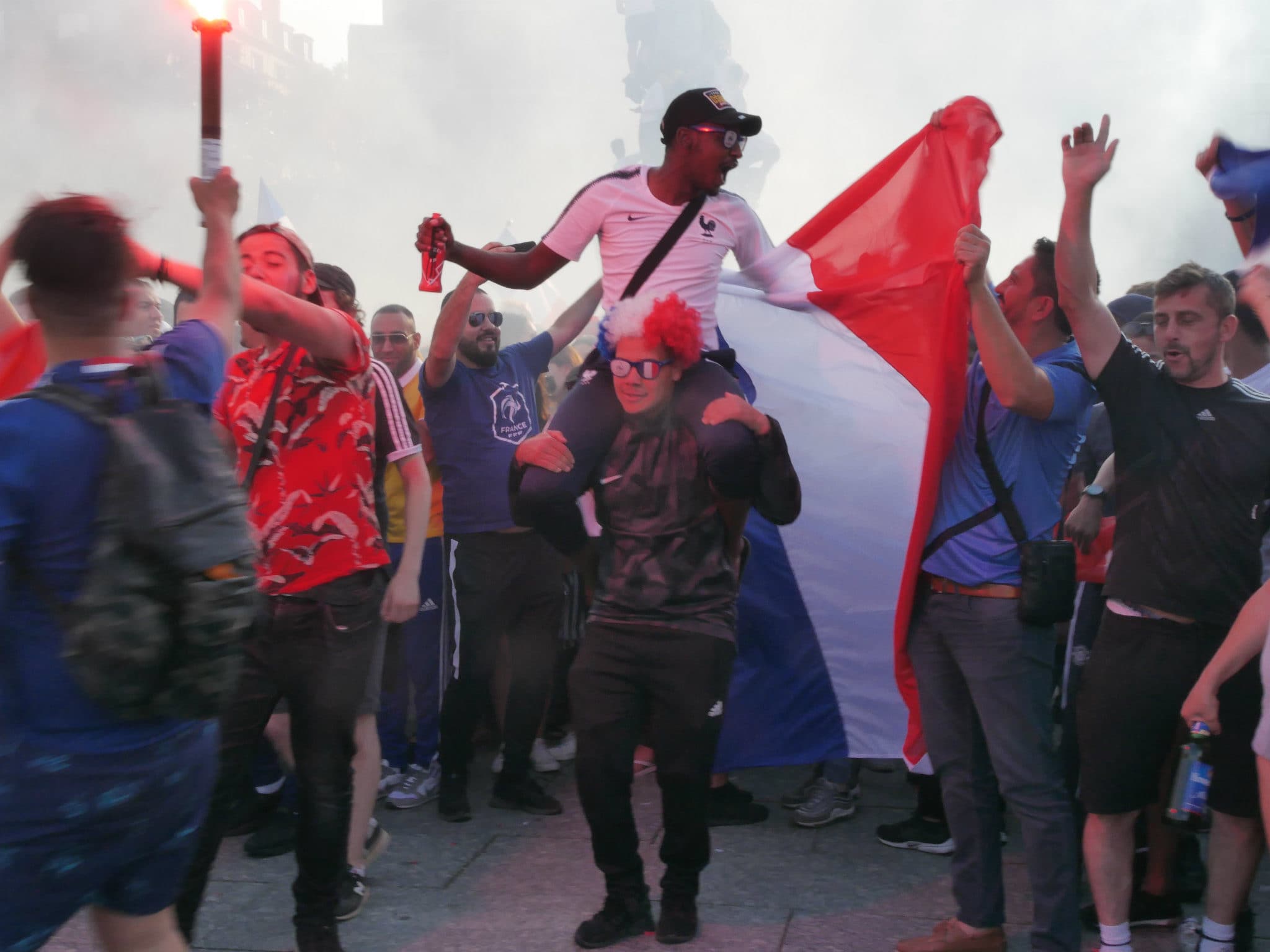 La France remporte la Coupe du monde 2018 ! En cette fin d’après-midi du dimanche 15 juillet, les Strasbourgeois ont laissé éclater leur joie après le coup de sifflet final. Danse sur des rythmes de djembés, fumigènes bleu-blanc-rouge, klaxons…