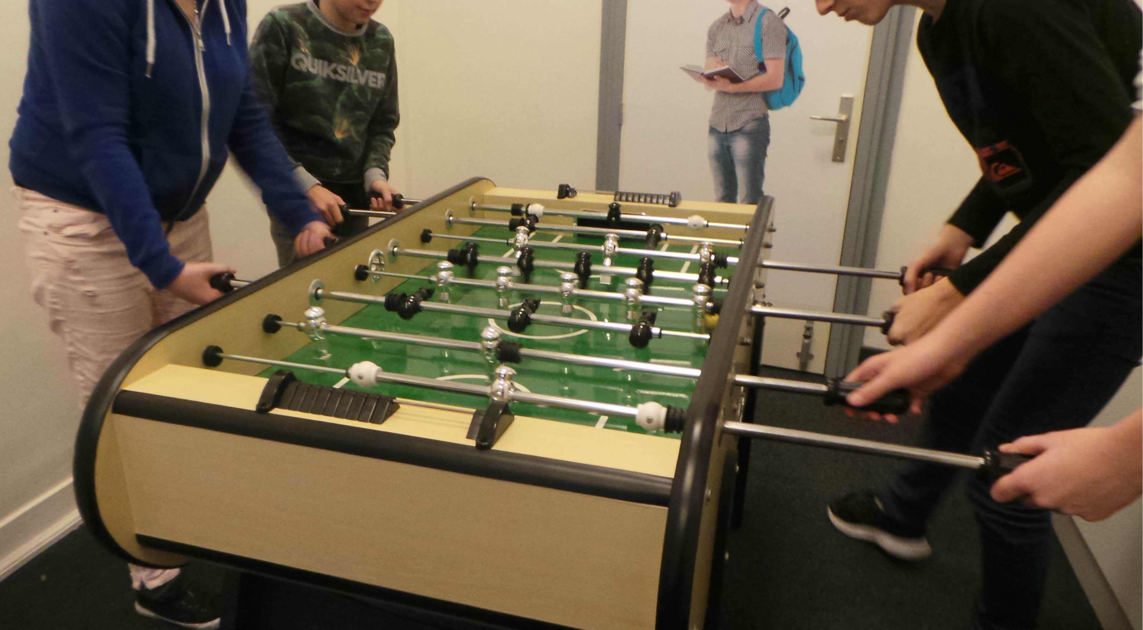 Certains élèves ont du mal à être entourés. Pendant la pause, les élèves jouent au baby-foot, trois garçons et une jeune fille. Une scène banale partout ailleurs, mais Magali Schaedelin est très enthousiaste devant cette scène :
