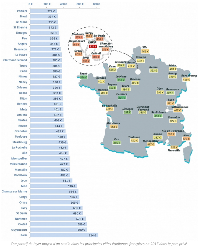Mais surtout, elle enregistre la troisième plus forte augmentation de prix sur toute la France, avec 2,18% (contre 2,09% au niveau national, soit le triple de l’inflation). Certes, l’étude de l’Unef tient plus de l’esquisse à la brosse épaisse que du portrait au pinceau fin. Les chiffres obtenus sont une moyenne calculée à partir « profils types » d’étudiants. Comme pour les vagues grand froid, la température annoncée n’est pas forcément celle ressentie par l’étudiant qui habite chez ses parents avec le chauffage, ni par celui-ci qui gèle dans sa studette aménagée sous les combles !