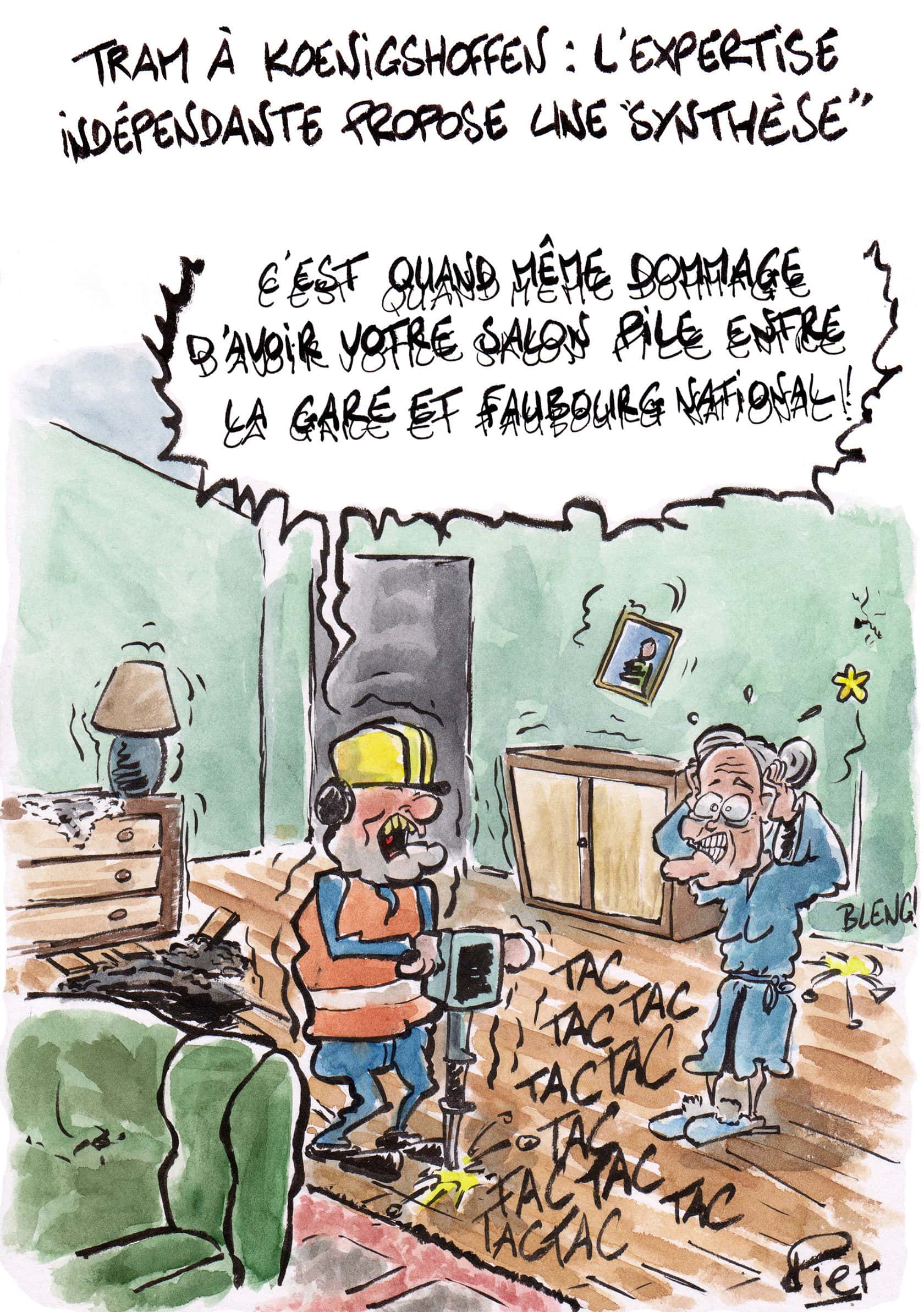 Bataille d’experts autour du projet de tramway à Koenigshoffen. L’étude commandée par le collectif pour le tram à Koenigshoffen, opposé au tracé proposé par la Ville, remet en cause l’argument financier invoqué par la mairie. Curieusement, elle propose aussi une solution de « synthèse », entre le projet dévoiement sur le faubourg national de la ligne F qui pour le moment l’Elsau, et le prolongement de la ligne C par la gare, sans apporter de précision.
