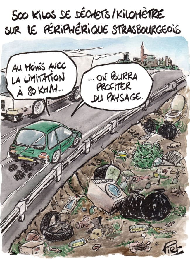 500 kilos de déchets par kilomètre retrouvés par an… Les abords de l’A35 autour de Strasbourg sont pas reluisants. Alors que le gouvernement veut abaisser la vitesse maximale sur les routes secondaires, pourquoi ne pas étendre cette mesure aux voies séparées ?
