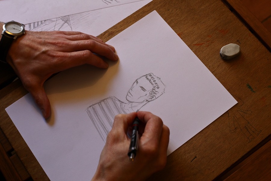 « Mon père, autodidacte, a toujours été un peu artiste : il a fait de la photo, de la peinture, de l’artisanat (confection de sacs en cuir, de ceintures…). Ses encouragements et ceux de ma famille en général m’ont influencé. Si tout petit, on n’avait pas remarqué ce que je faisais, ça aurait peut-être changé des choses… Mais avec la fascination que j’ai pour le trait, pour l’image, je pense que je me serais sans doute tourné de toute façon vers un métier artistique. »