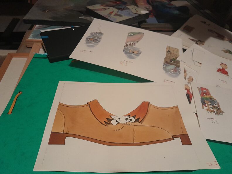 Sous la véranda de la maison alsacienne, une photo attire l’attention. Claude Lapointe y fait face à une salle de classe bondée. « C’était pour son dernier cours à l’école des arts décoratifs, en 2006 », expose Bernard. Beaucoup de ses anciens élèves étaient venus y assister. Certains sont assis à même le sol, en tailleur, d’autres se serrent au fond de la pièce. Beaucoup d’illustrateurs réputés, primés ou nommés au festival de BD d’Angoulême, sont passés par la classe de Clap : Matthieu Sapin, Marjane Satrapi, Catel, Blutch, Christian Voltz… La liste est loin d’être exhaustive.