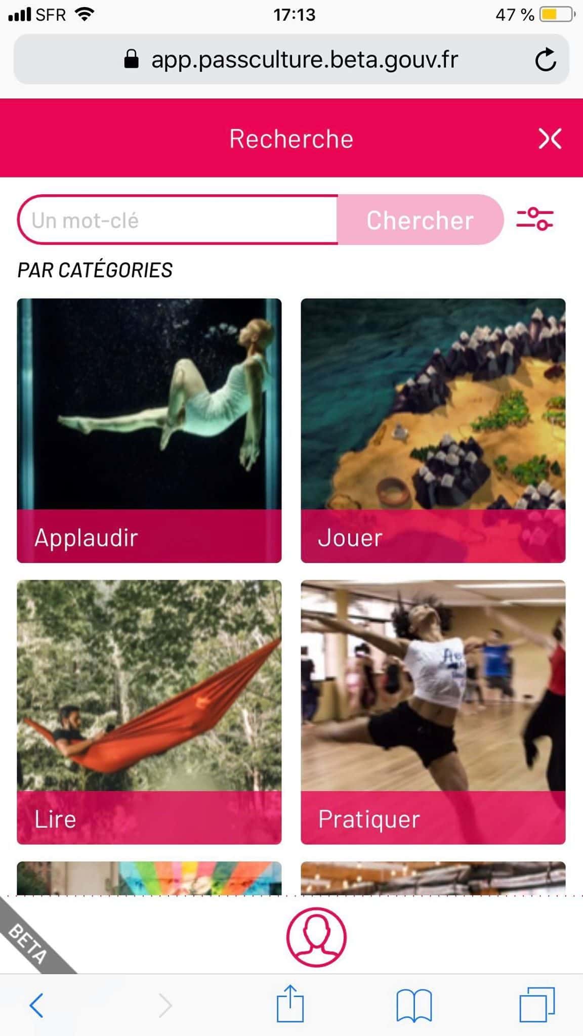Sur le site mobile, les utilisateurs ont accès à une interface où les offres sont réparties dans plusieurs catégories : Applaudir, jouer, lire, pratiquer, etc. La géolocalisation informe l’usager de sa distance avec lesdites offres. Une recherche par mots-clés est également disponible. « Le système d’offres est très inutilement complexe », estime Matthieu, un jeune expérimentateur. « Je pensais qu’il faudrait par exemple aller en librairie, choisir un livre et donner son identifiant pass Culture pour l’acheter ». En fait, la librairie choisit les ouvrages éligibles.