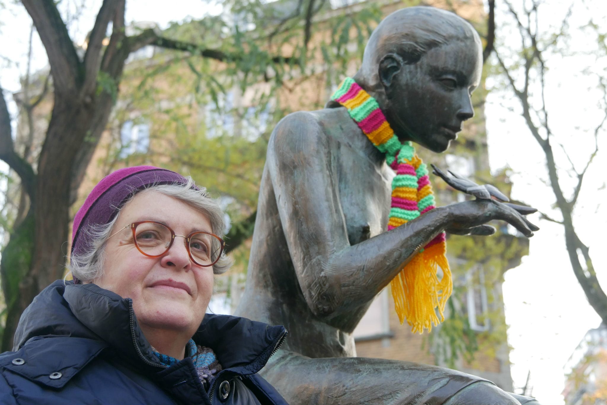 Valerie Linge se décrit comme une "tricoteuse urbaine". Elle fabrique des écharpes, des bonnets ou des gants pour les accrocher à des statues, des arbres ou un poteau. Mais l'artiste regrette de voir ses œuvres rapidement décrochées et se sent seule à Strasbourg. Elle rêve d'un gang des tricoteuses, comme à Mulhouse.