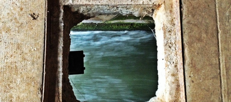 Sous l’hôtel Régent Petite France, l’Ill s’écoulait avec un débit suffisant pour produire électricité et pains de glace jusqu’en 1990 (Photo MM / Rue89 Strasbourg)