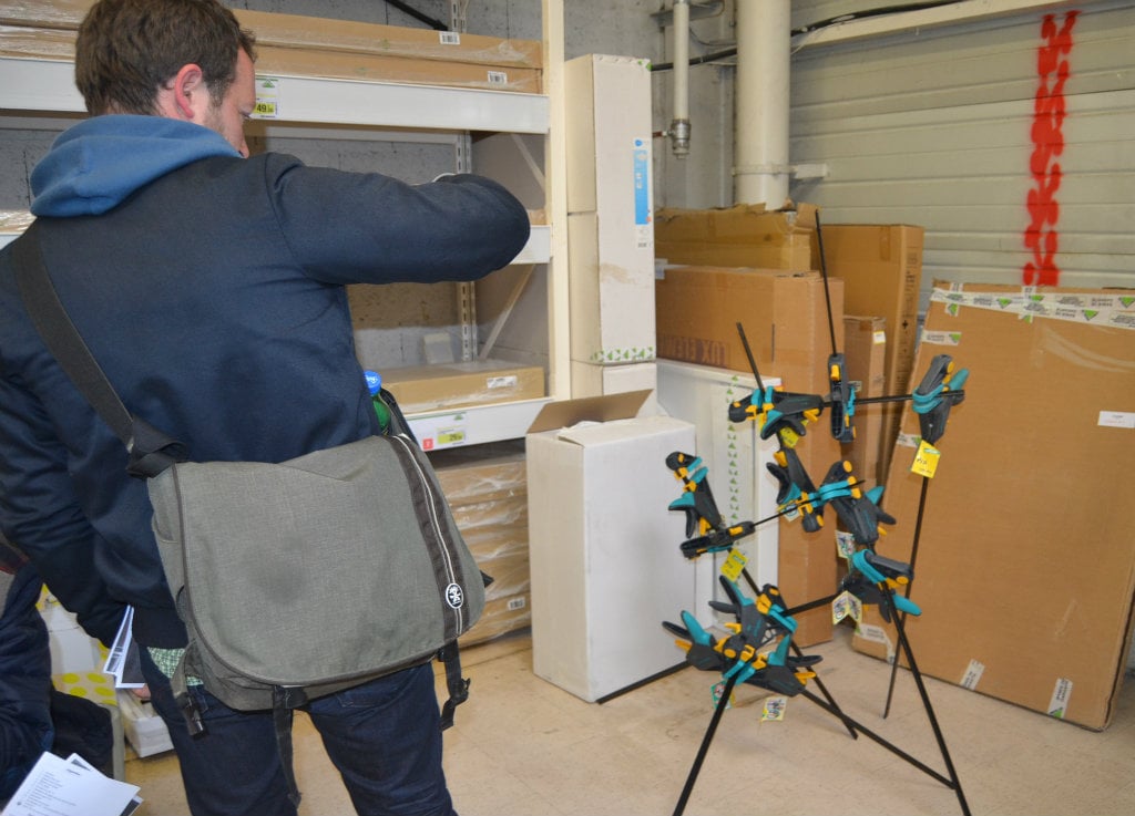 C’est un samedi comme les autres au magasin Leroy Merlin d’Hautepierre à Strasbourg. Il est 14h et les clients entrent et sortent, discutent, agacent les vendeurs… Sauf que bien cachés au fin fond d’un rayon Antoine Lejolivet et Paul Souviron, du collectif Encastrable, sont en train de créer des œuvres d’art uniques. Avec les matériaux du magasin, ils mettent sur pied quelques sculptures : table de nuit multi-fonctions, bibelots… Le tout, à l’insu du personnel du magasin.