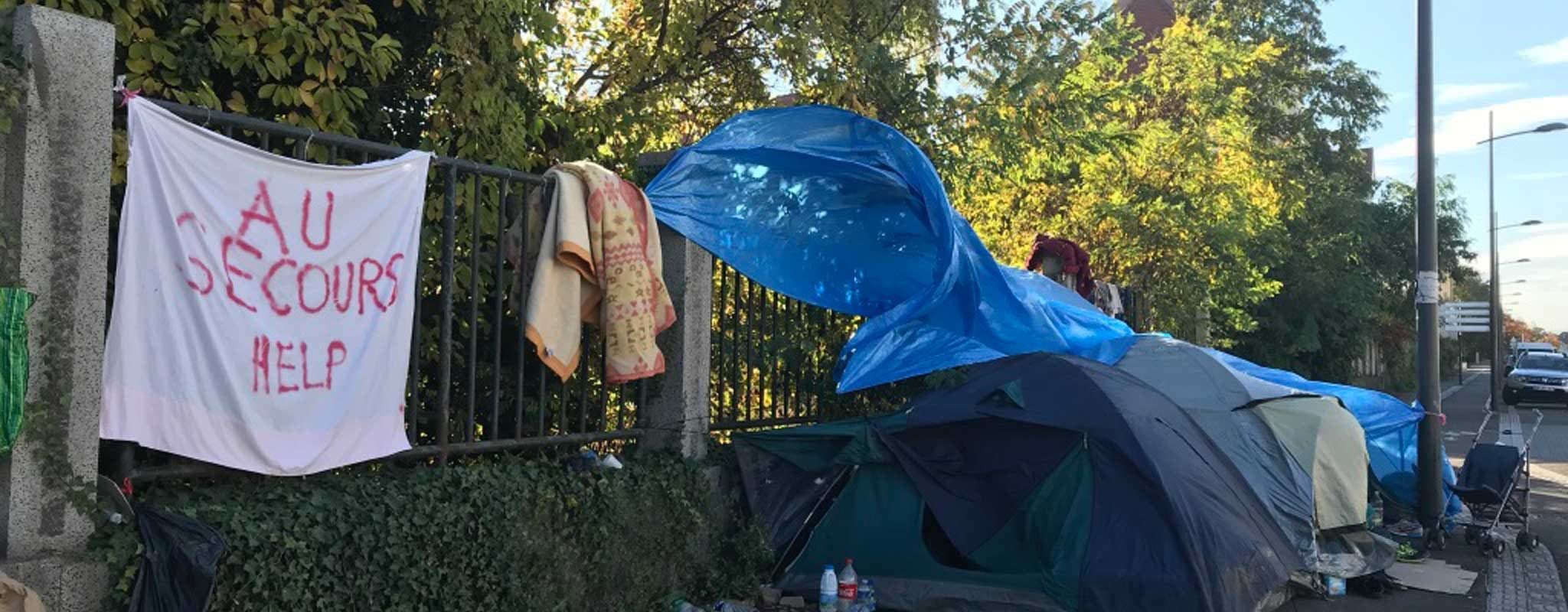 Huit familles demandeuses d’asile ont posé des tentes et des bâches sur les trottoirs de la rue des Canonniers au Neuhof, faute de place dans les centres d’accueil de Strasbourg. Deux mois seulement après l’évacuation d’un campement de familles demandeuses d’asile le 17 août, un nouveau est en train de se recréer au même endroit depuis mi-octobre. La situation est particulièrement préoccupante pour les nombreux enfants en bas âge.