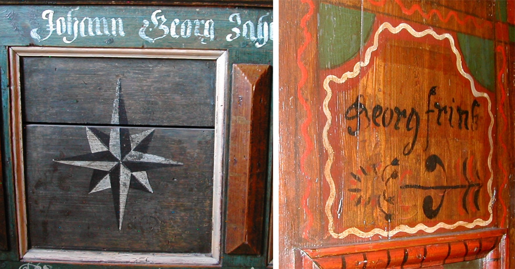Cela faisait bien longtemps que je n’avais moi-même franchi les portes de ce musée. J’ai été frappée par le foisonnement des objets, et aussi par leur caractère quasi ésotérique. Pour une non-spécialiste, nombre d’artefacts paraissent bien mystérieux : symboles peints, poutre sculptée rappelant irrésistiblement un totem tribal, manifestations de la superstition dans la religion et la vie quotidienne, articles à la fonction incompréhensible sans l’aide du cartel. De plus, la tradition alsacienne se caractérise par une forte propension à « dédicacer » les objets, en particulier les meubles. On y lit des dates, des noms, parfois des occasions (baptême, mariage, …) qui incarnent leurs anciens propriétaires. Ce que Walter Benjamin nomme l’aura règne ici : les fantômes sont cachés dans les boiseries.
