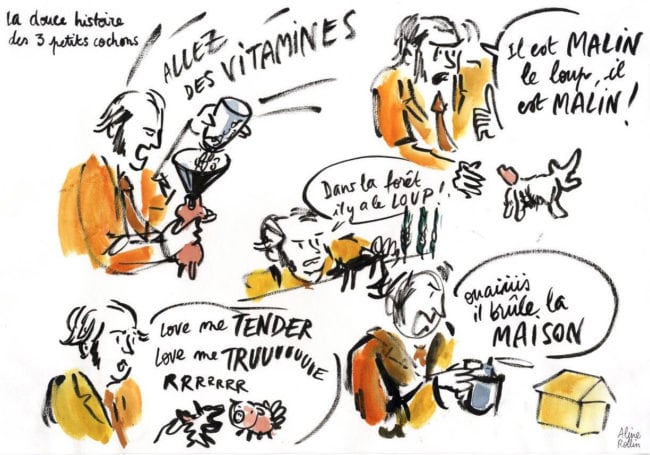 Et alors quand c’est prêt, c’est parti. En 2016, le spectacle « Les 3 petits cochons » (Illustration Aline Rollin)