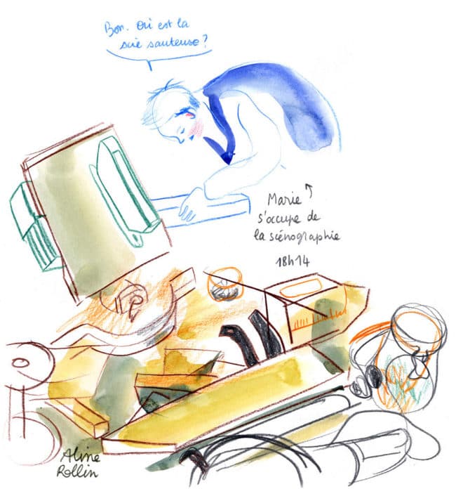 Marie s’occupe de la scénographie / Live sketching (Illustration Aline Rollin)