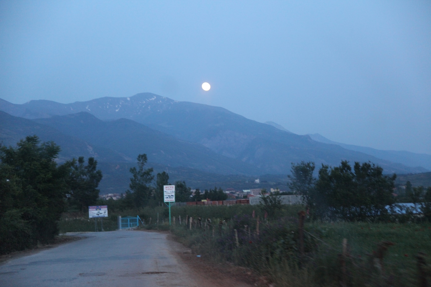 Heureusement, entre chiens et loups, nous arrivons à Peshkopi, petite ville d’Albanie, à la frontière avec la Macédoine… où il y a une pompe « à essence » . Sauvés !