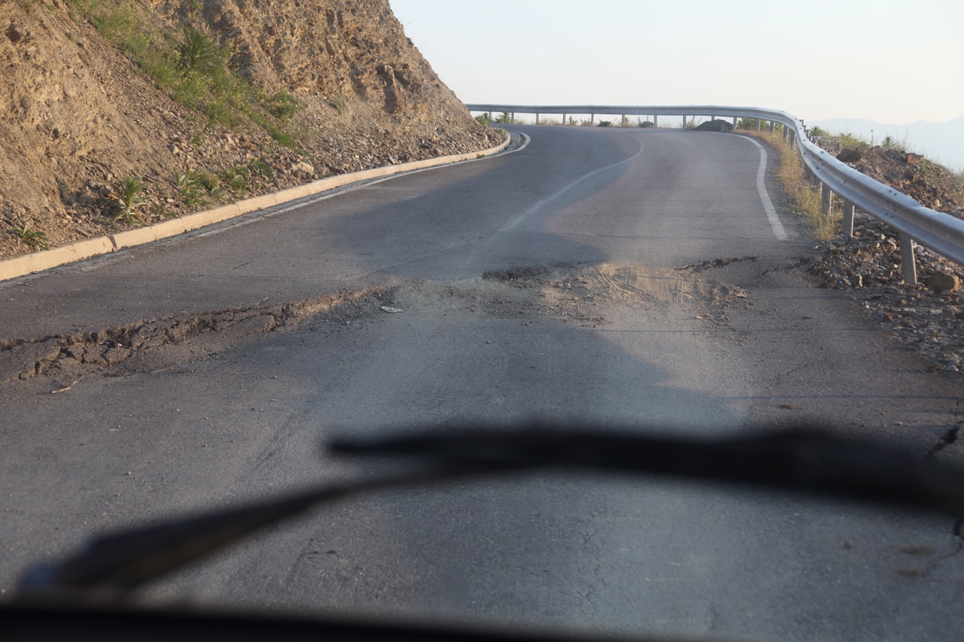 Parfois la route s’arrête, interrompue par un éboulement de terrain ou un troupeau qui traverse.