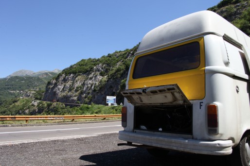Après plusieurs jours sur les routes, entre Bosnie, Croatie, Monténégro et Albanie, le Bulli arrive, rompu mais toujours entier, à Skopje pour sa sixième semaine de reportages.