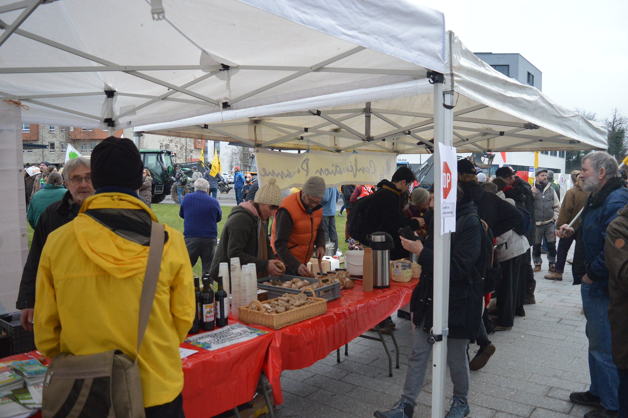 La Coordination rurale rassemble, sur la journée, 200 agriculteurs venus d’Alsace, de Moselle, des Vosges et des Allemands devant l’entrée du Parlement européen. « C’est juste une mobilisation fixe, sans procession, mais certains rejoignent la manifestation en tracteur », précise Mathilde Roussi, animatrice du syndicat pour la Région Grand Est. Paul Fritsch, président de la Coordination Rurale du Bas-Rhin, entend se concentrer sur « le volet européen » des revendications de son syndicat :
